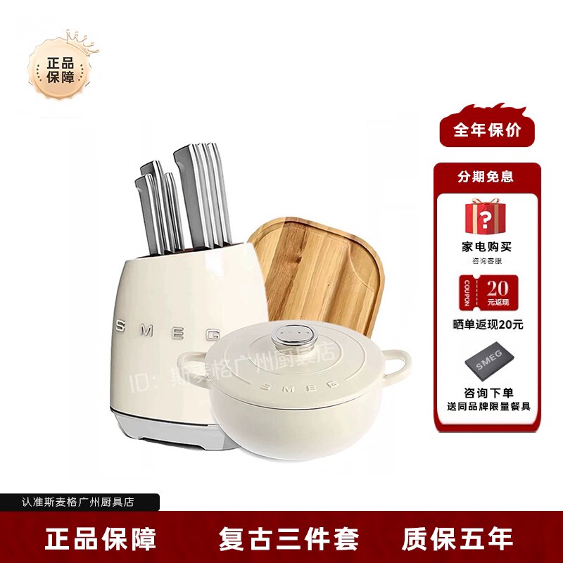 SMEG Кухонная утварь, комплект, ретро нож, классическая эмаль, 3 шт