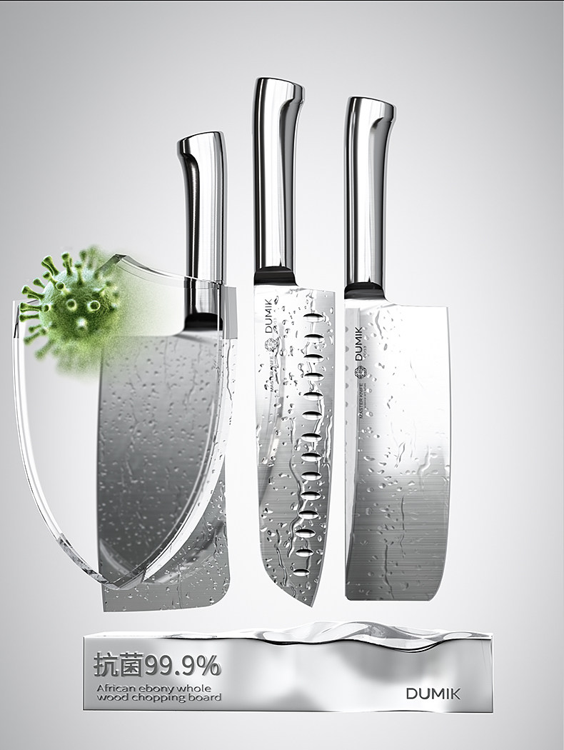 Интегрированный цельнометаллический набор ножей, кухонная комбинация, бытовая кухонная утварь, полный набор, нож для резки костей, фруктовый нож, кухонный нож, разделочная доска «два в одном»