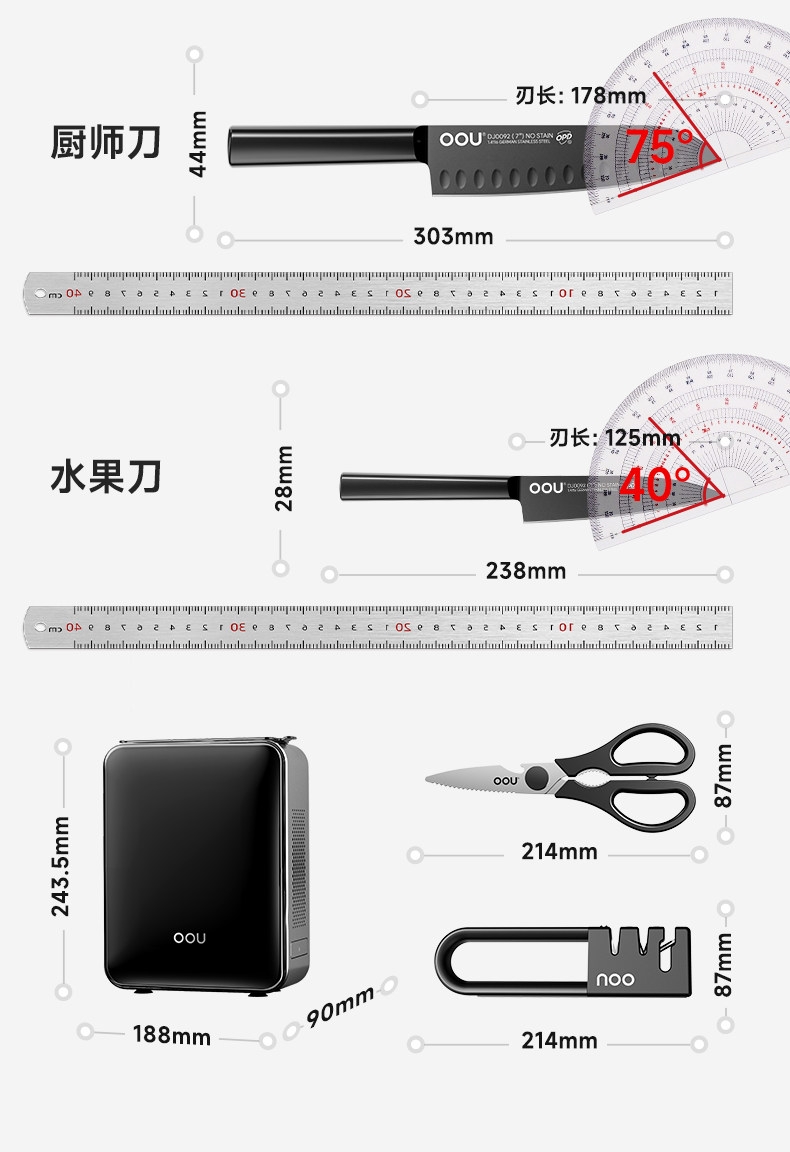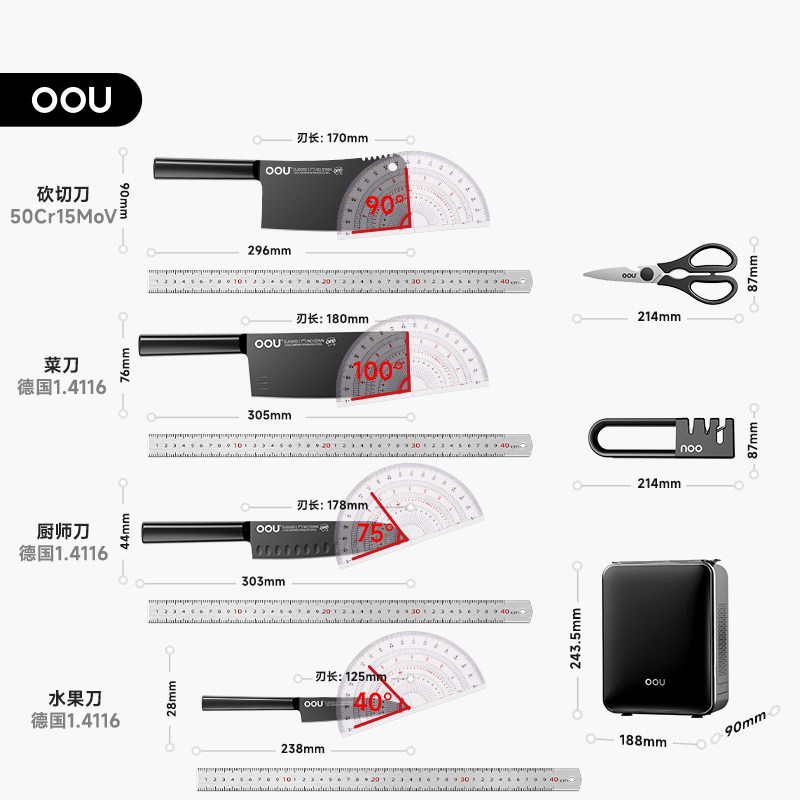 OOU Черный лезвие пять серий комбинированный кухонный нож. Домохозяйство кухонная посуда Полный набор кухон