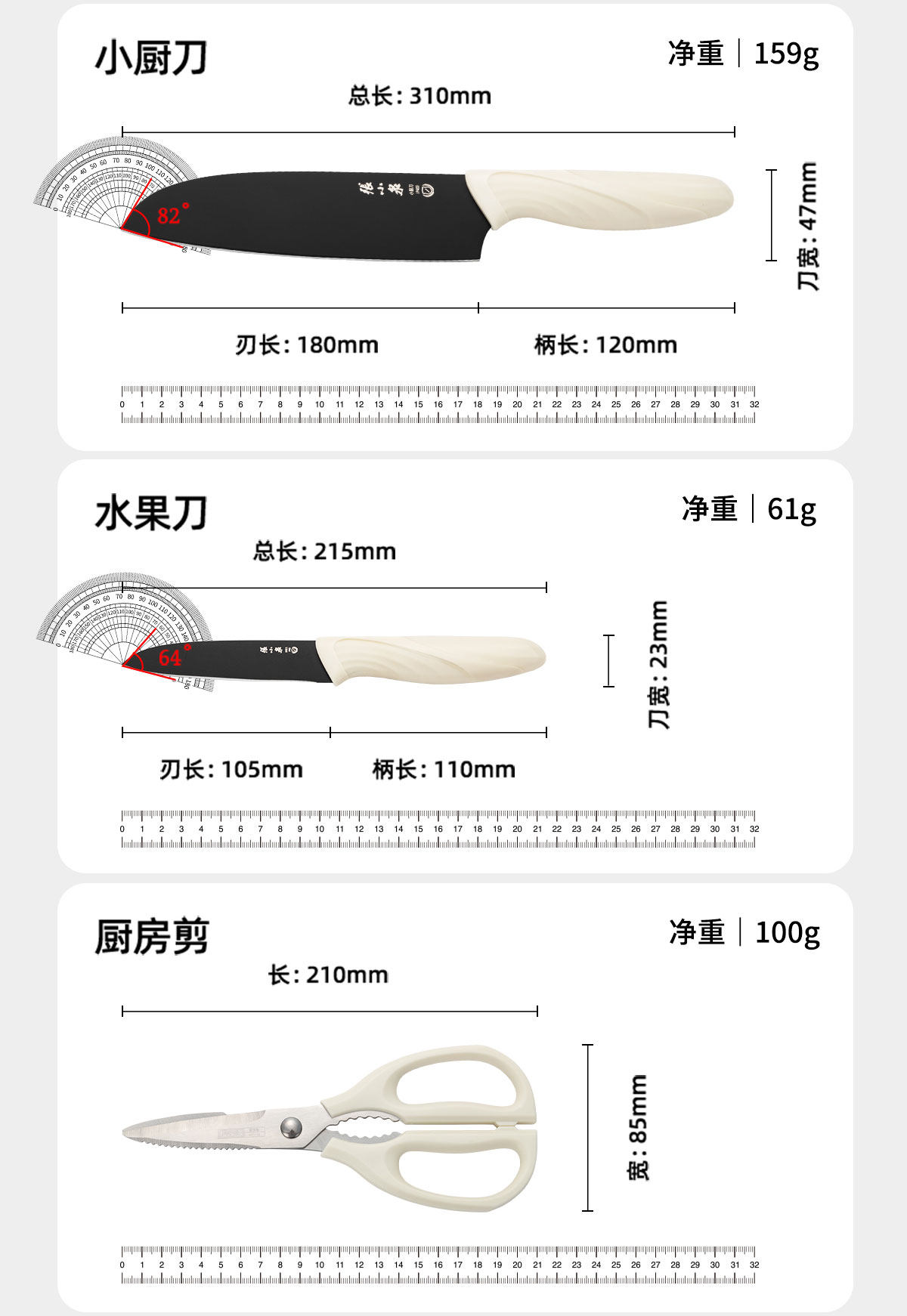 | Цвет: | Комплект, нож, Нож, разделочная доска, набор из натурального дерева, комплект, Набор ножей и ножниц из трех частей серии Luoying |