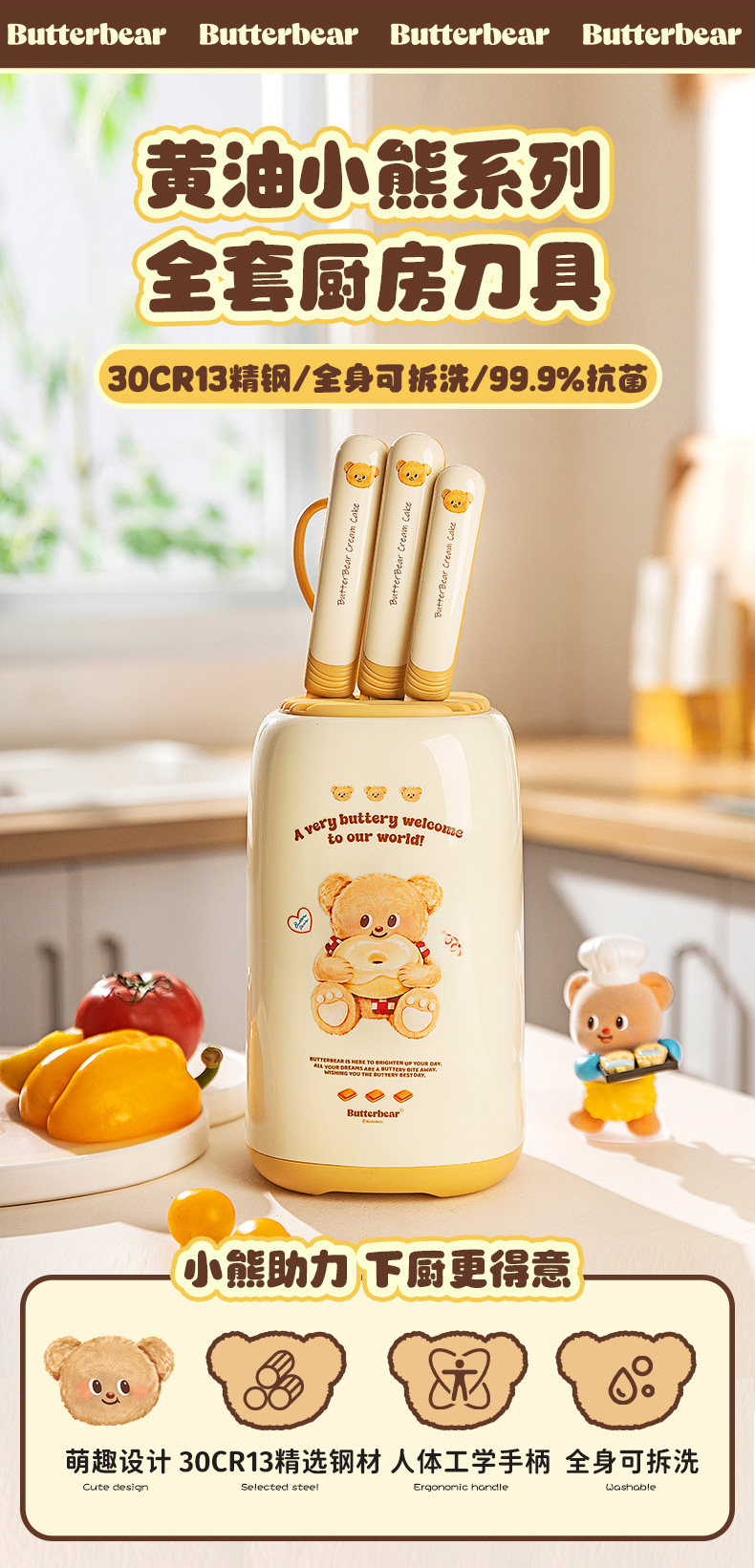 Масло, детский нож, комплект, кухонная утварь, с медвежатами, 2 в 1