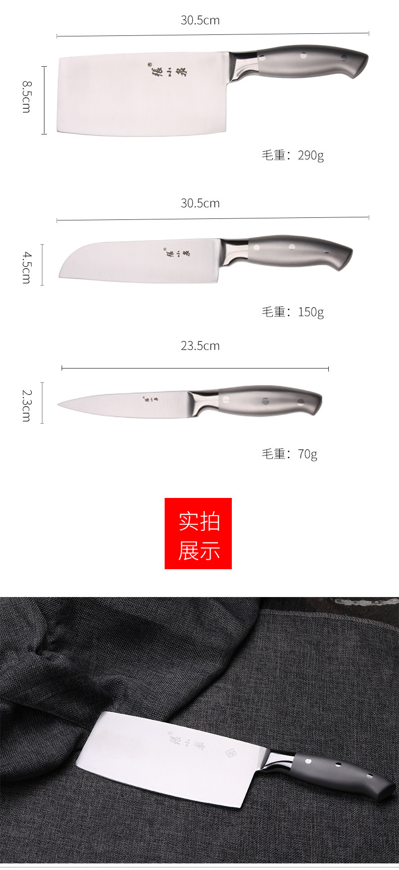 张小泉 Нож, комплект, цельнометаллический набор из нержавеющей стали, 3 предмета