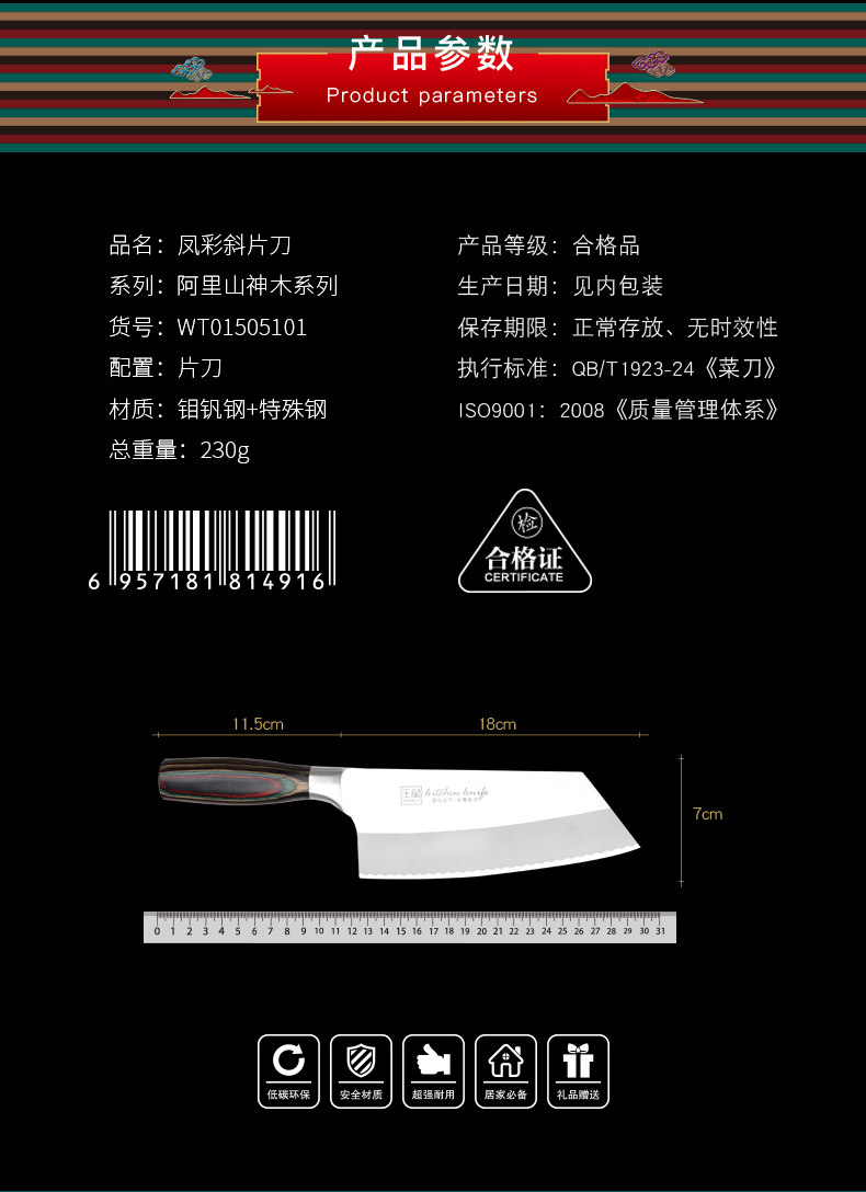 王记 Кухонный нож Fengcai Slice News Kitchen Tool Creative из нержавеющей стали кухонный нож.