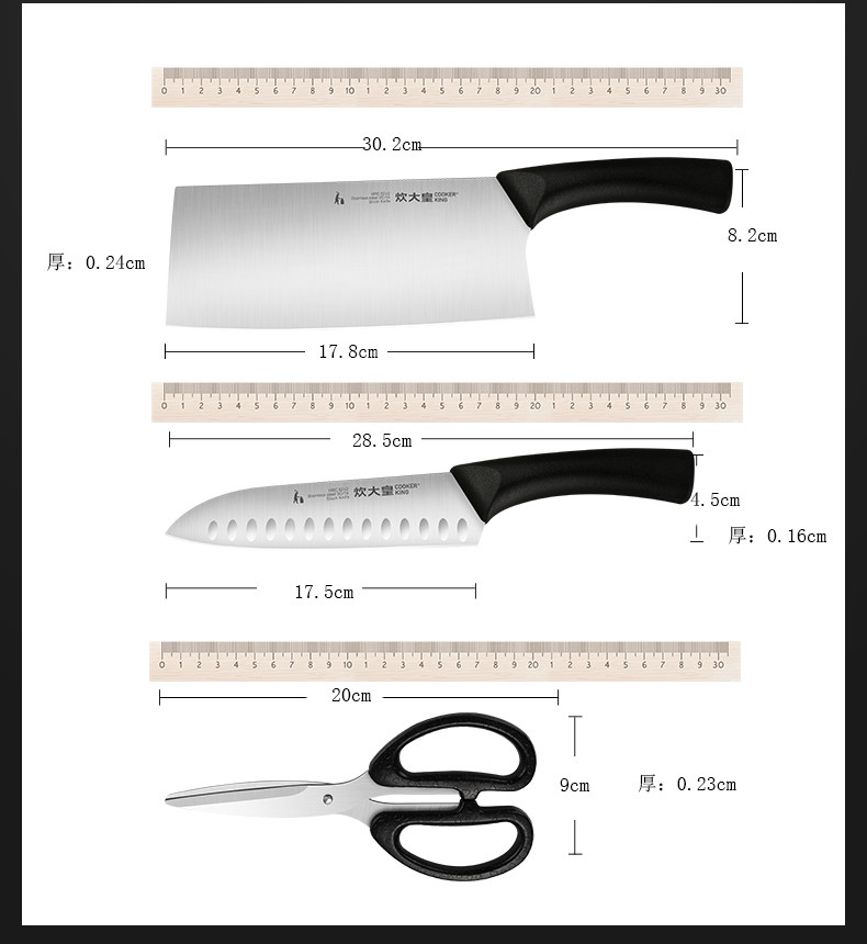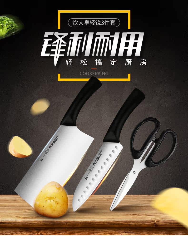 Нож, комплект, ножницы из нержавеющей стали для многоразового использования, 3 предмета