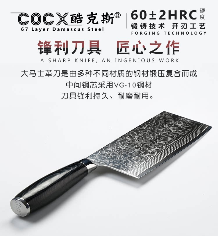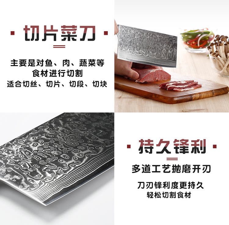 Kuks Damascus Steel Kitz Kitchen Высокая твердость супер быстрая борьба -Кепки кухня, предоставляя китайский слот -нож