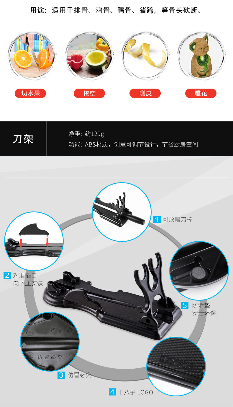十八子作 Кухня кухонная кухня Полный комплект домашнего кухонного ножа набор нарезанного кухонного ножа. Комбинация фруктов 347