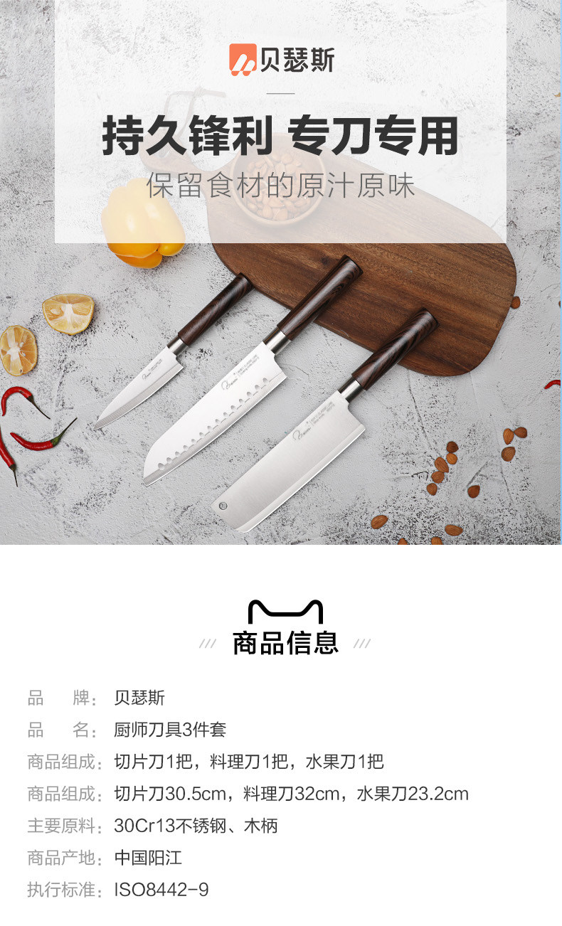 贝瑟斯 Нож, комплект из нержавеющей стали ручной работы, набор, Германия, 3 предмета