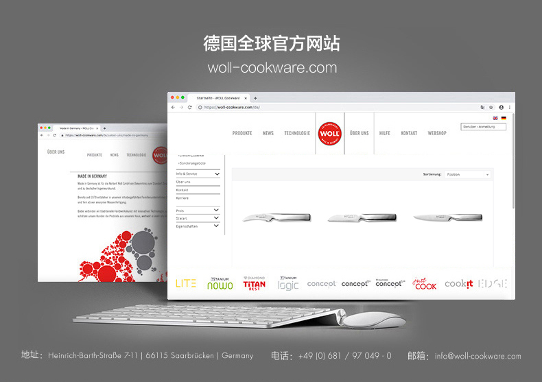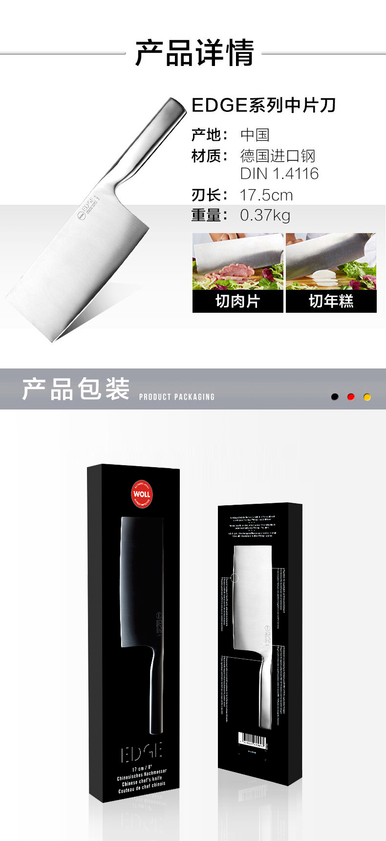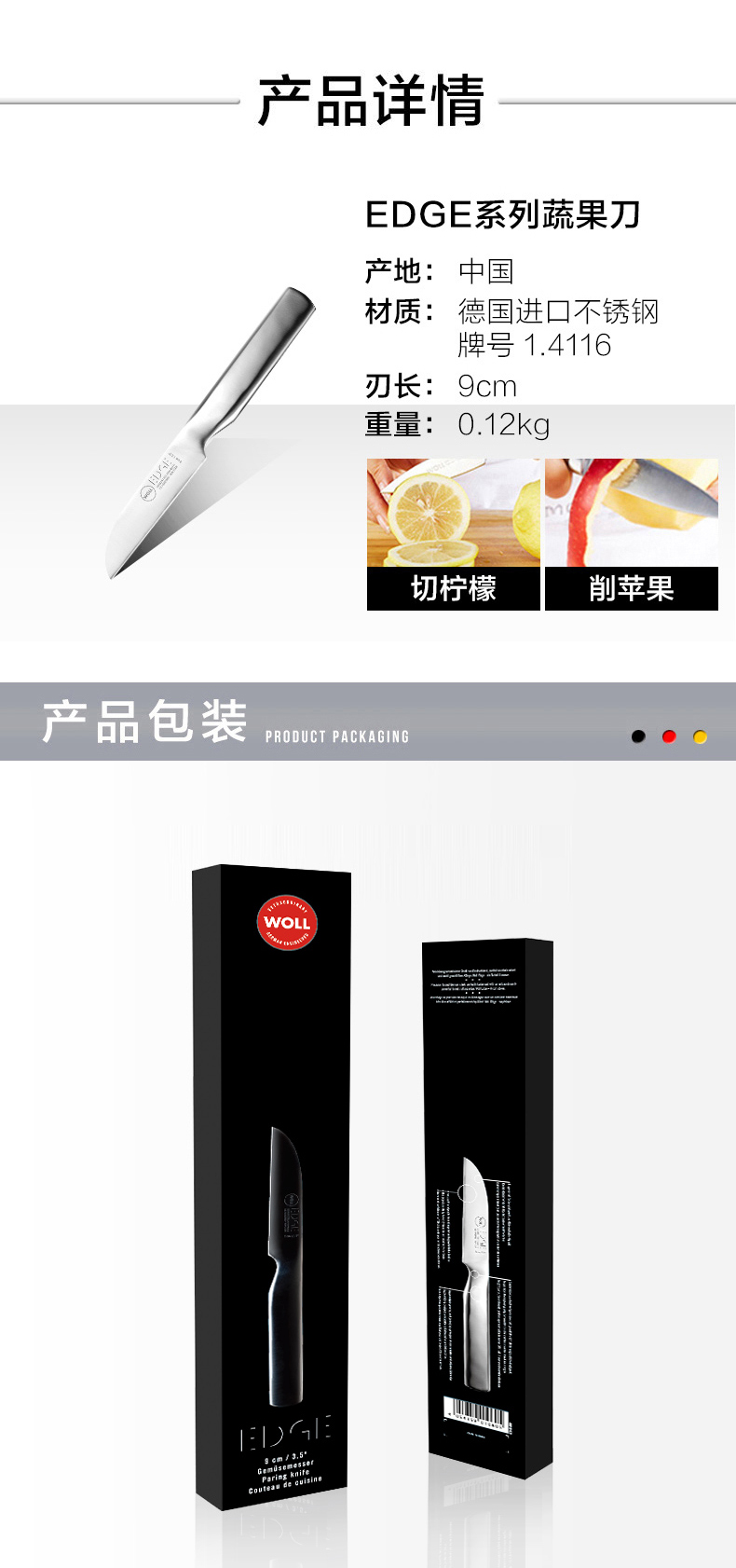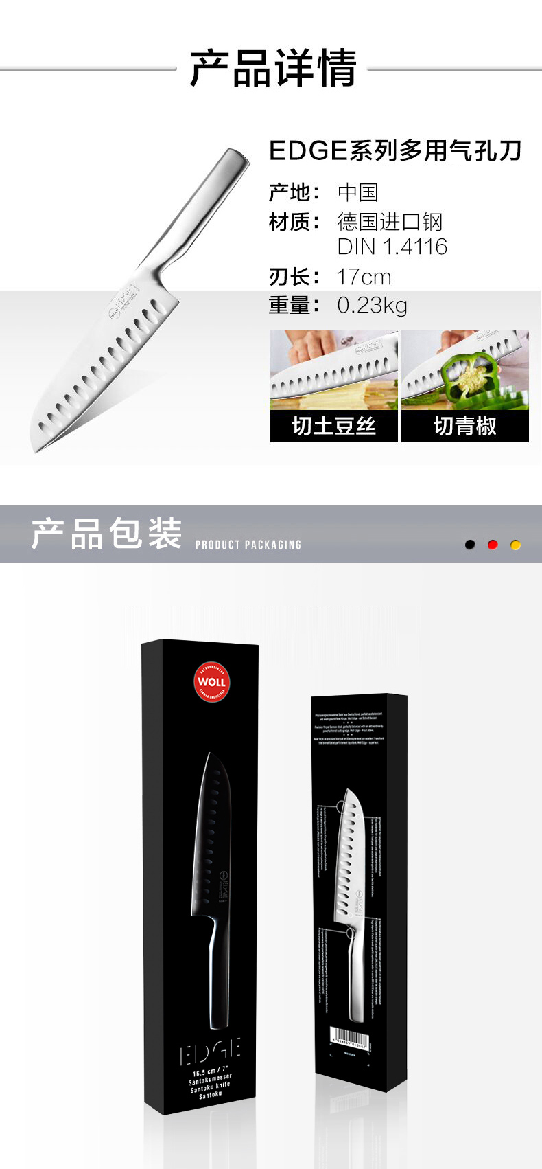 Нож Woll 国 Германия импортированная из нержавеющая сталь интегрированный кухонный шеф -повар.