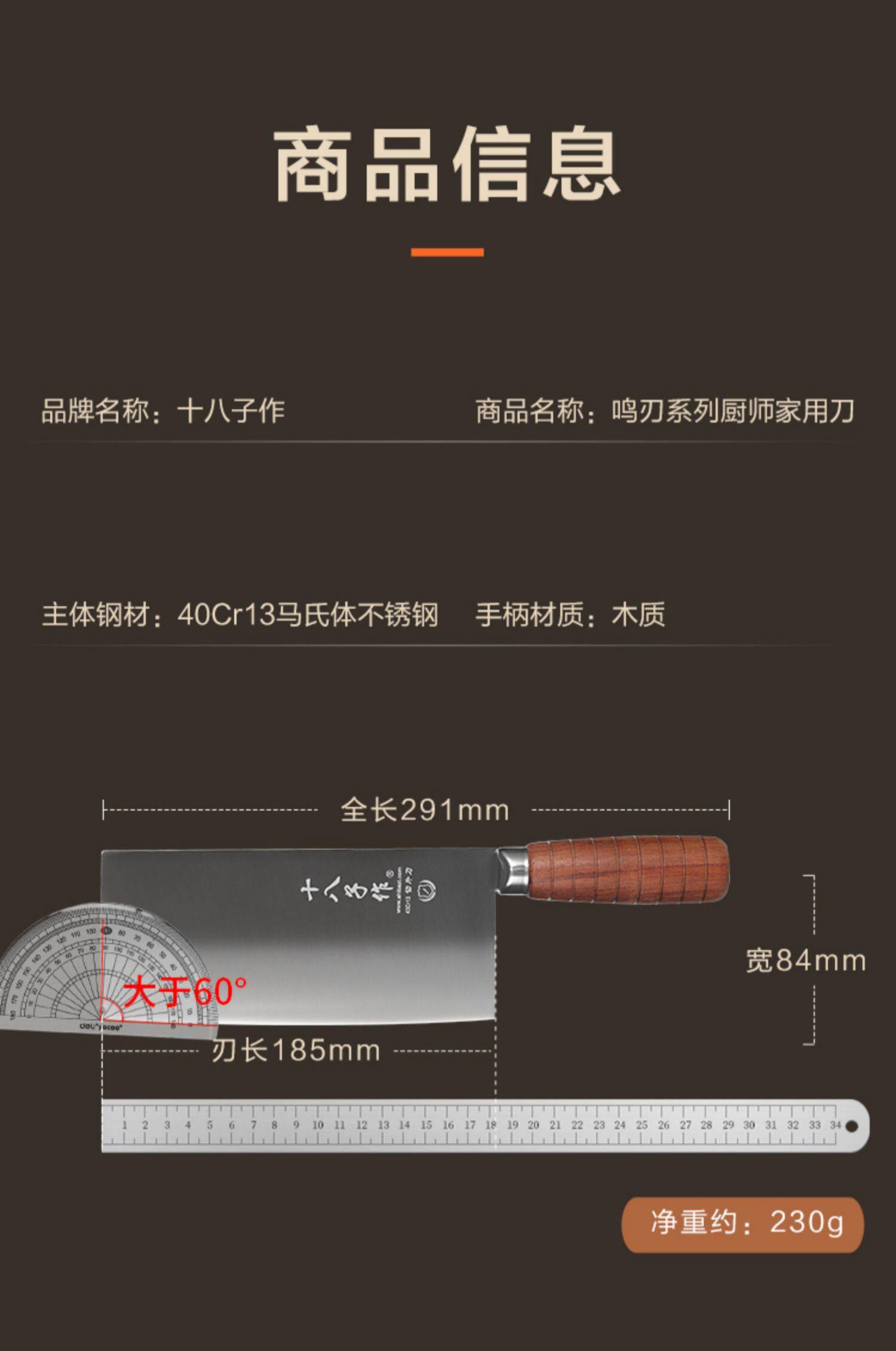 十八子作 Кухонный нож шеф -повар посвященный нож кухня режущая мясо нож дома острый нарезанный нож профессионал.