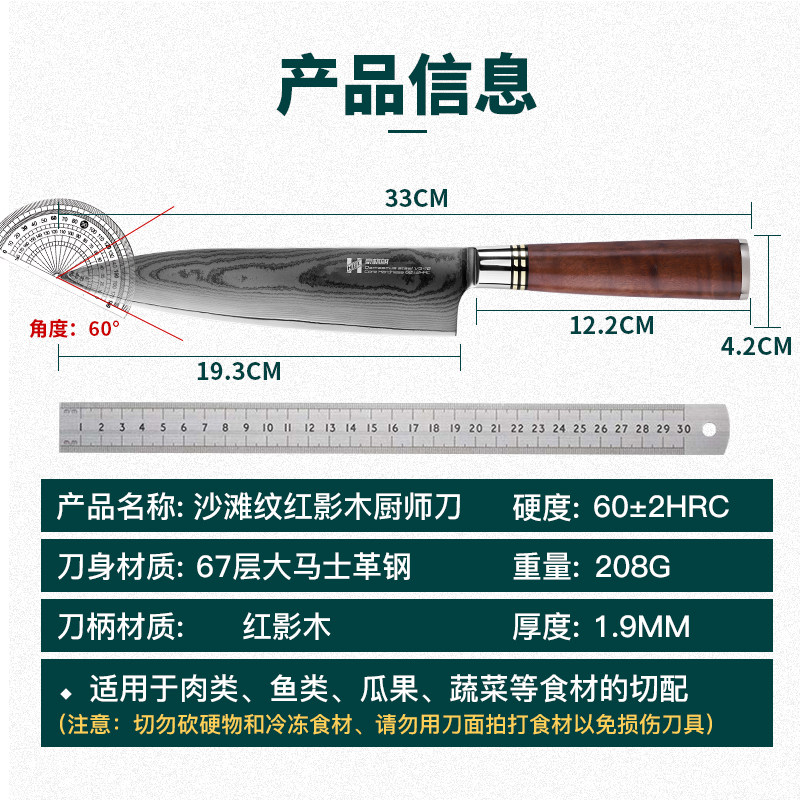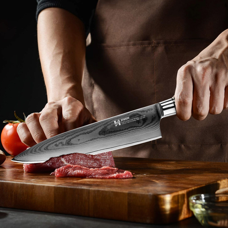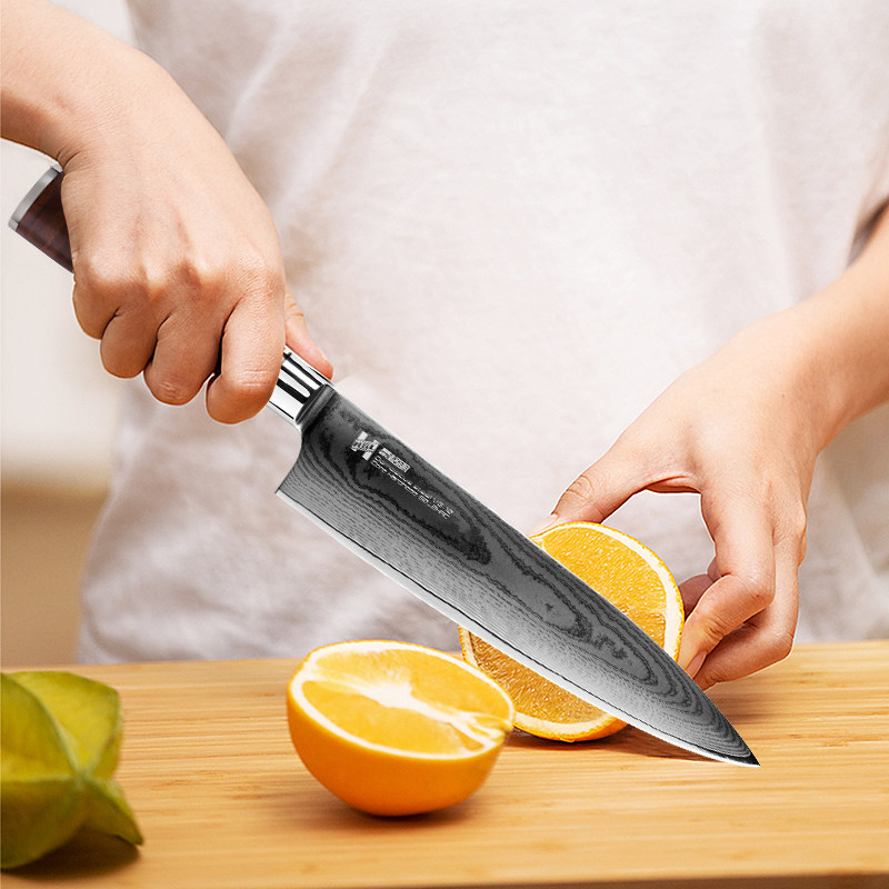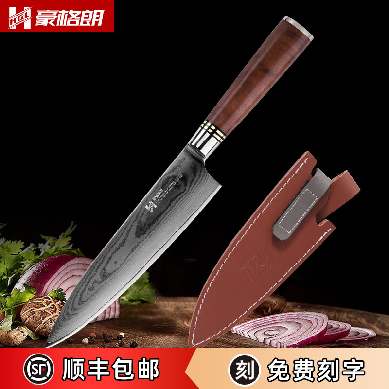 Damascus Steel Capped Knife Kitchen Kitchen Kitchen Cut Cut Meat Slip Svoll Super Fast Fengli Western Chef Нож