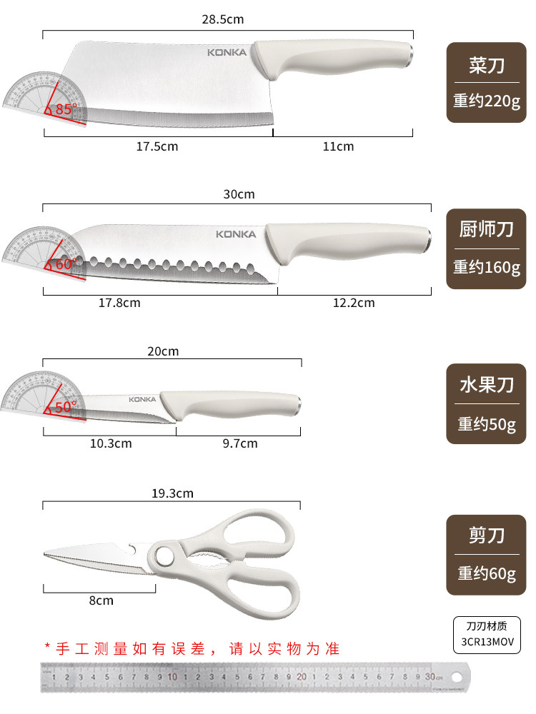 Konka, нож, антибактериальный детский комплект из нержавеющей стали, полный комплект, 920 карат