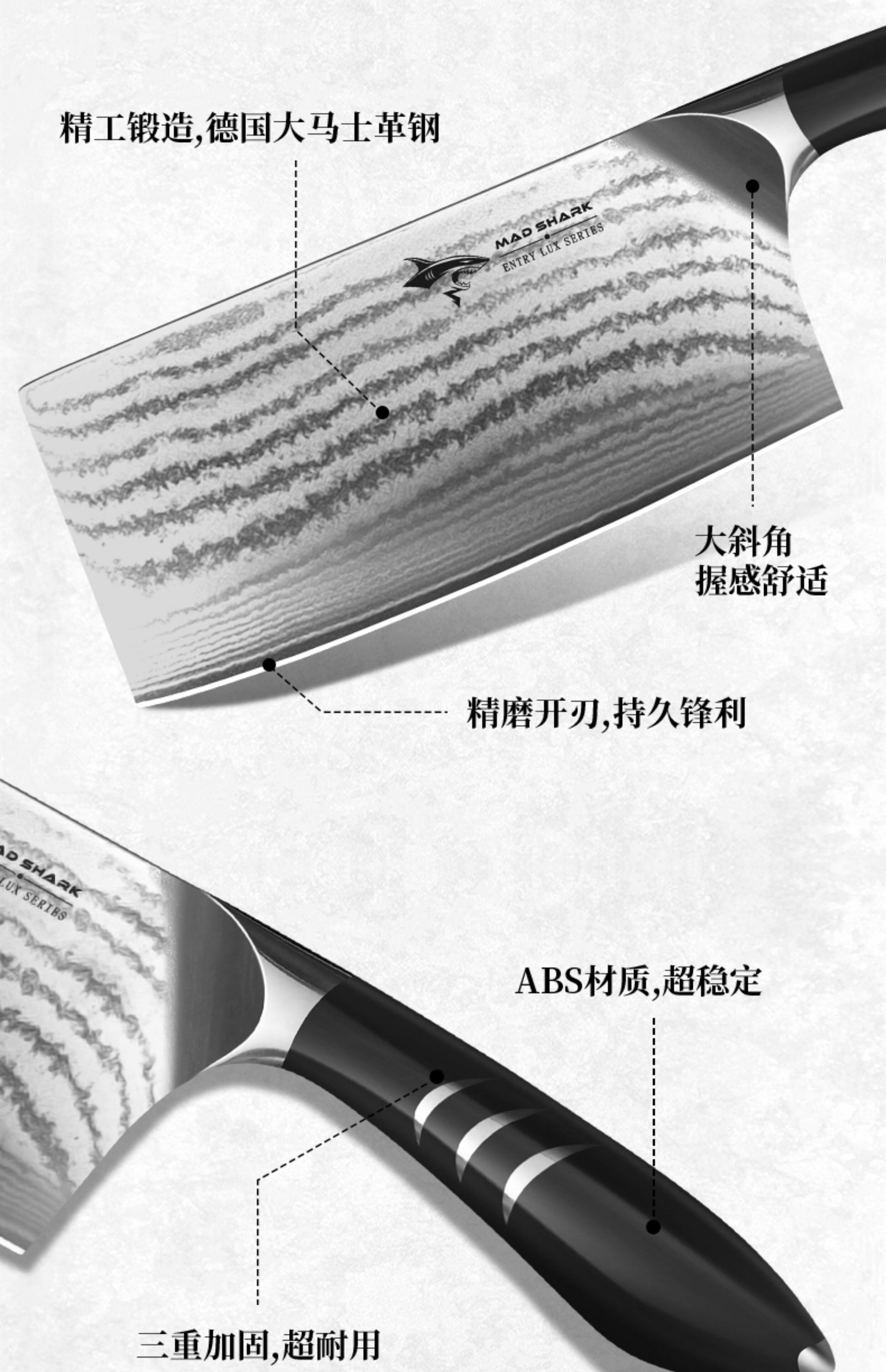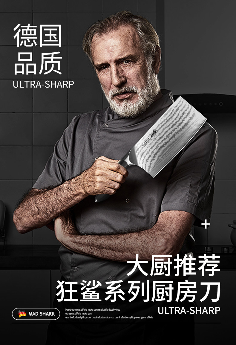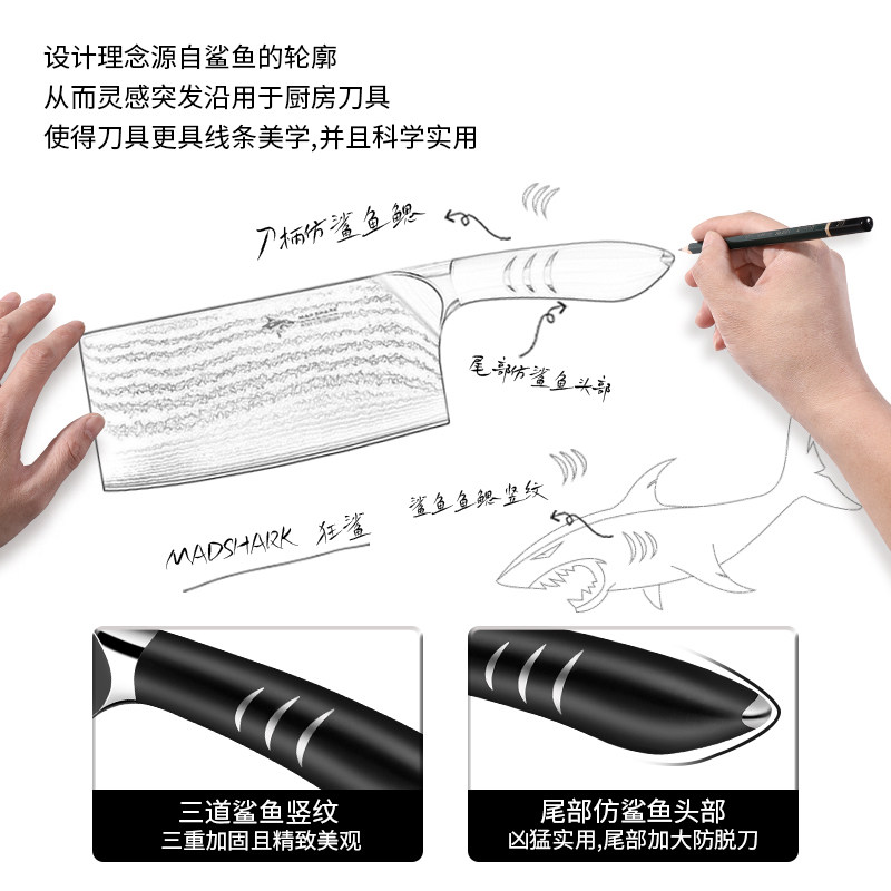 Сумасшедший акула Германия Дамаск стальной режущий нож. Дом шеф -повар посвященные костяные срезанные кусочка мясной кухня для мяса