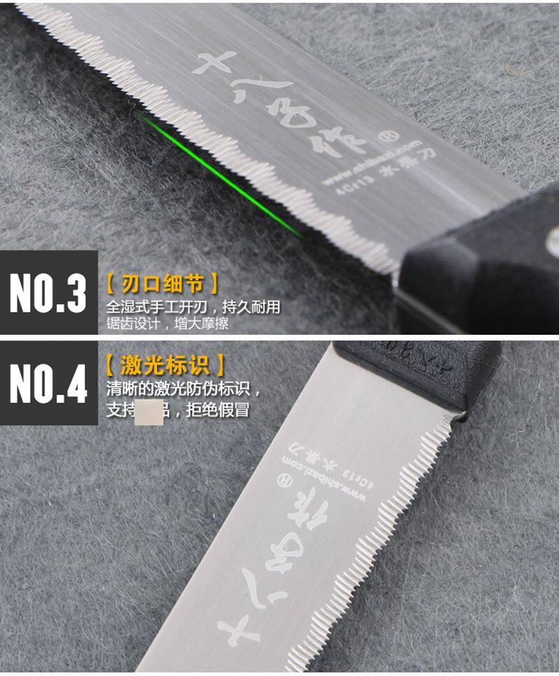 Выберите независимую отработанную макаронию хромий хромий хрома, сталь 3CR13,Используйте вакуумную термообработку, чтобы увеличить пластичность и вязкость материала, поддерживать гладкость поверхности материала, очистить и удалить смешанные объекты, такие как оксиды. После термообработки стабильность твердости высока.Улучшите сильную вязкость, резкость, сопротивление резкости и коррозионную стойкость ножа. Метод влажного молека используется, чтобы сделать нож долговечным и простым в соединении, чтобы вы могли наслаждаться удовольствием на кухне.