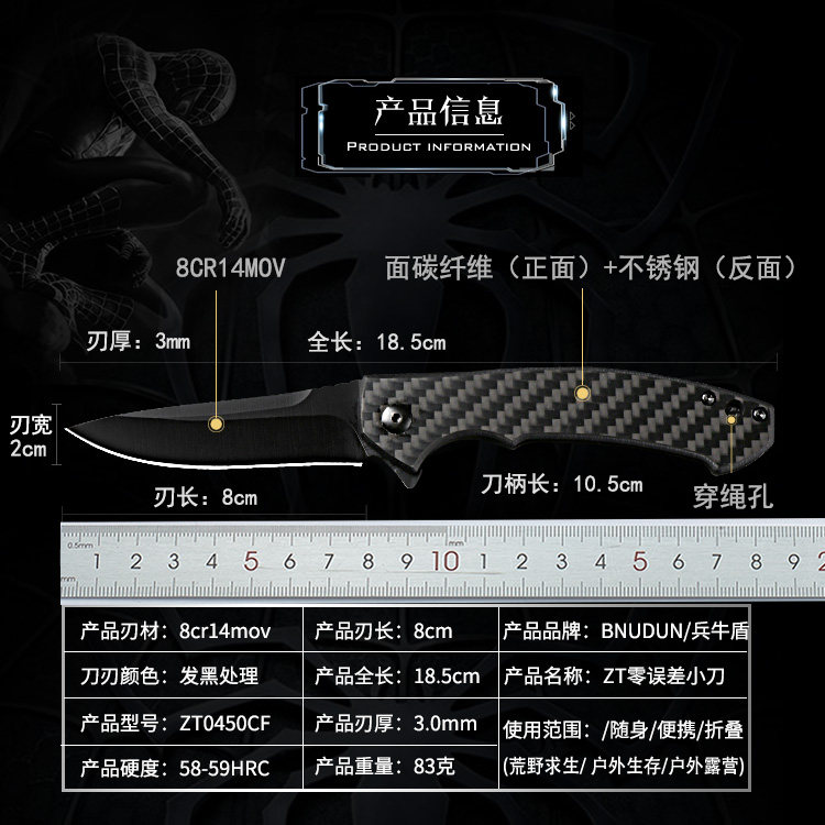 Taitong Bing Niu Shield 2022 Новая версия ZT0450CF Складное складное складное нож нулевой ошибка EDC Home Portable Fruit Knife