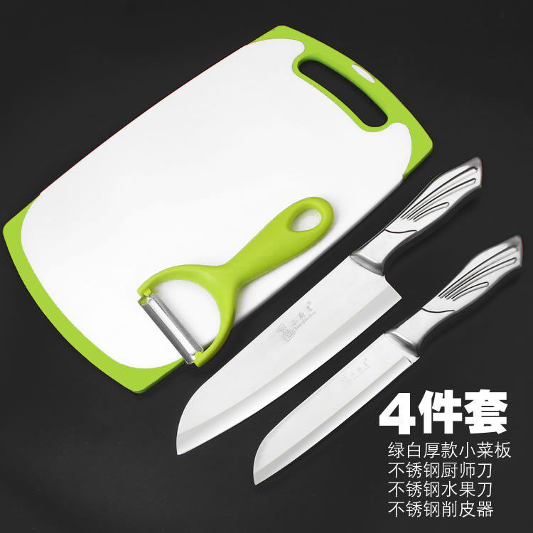 - Нож шеф-повара, нож для фруктов, небольшой строгальный станок, набор из четырех штук.