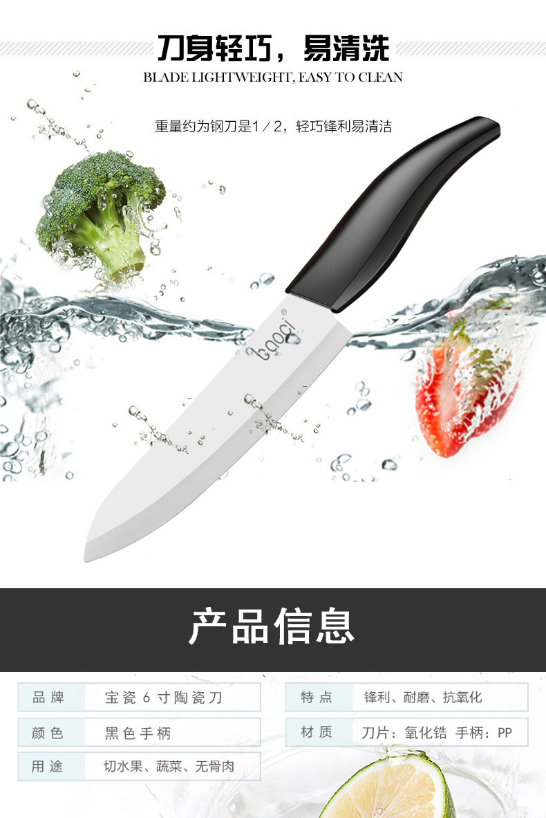 Baoci Treasure фарфор 6 -вдрудочный керамический нож. Домохозяйный фруктовый нож Кухня Ружа мясо.