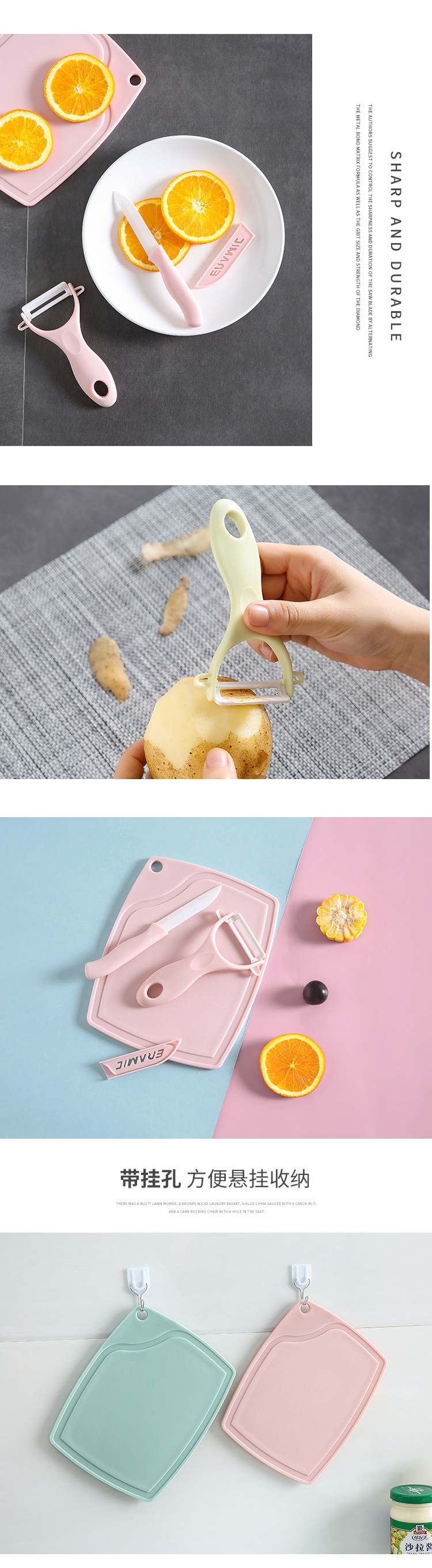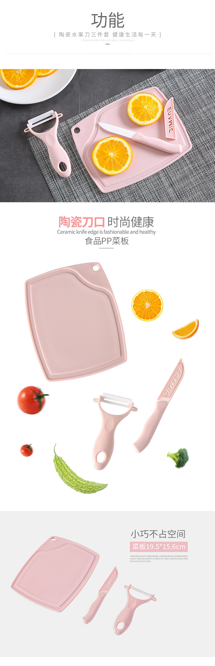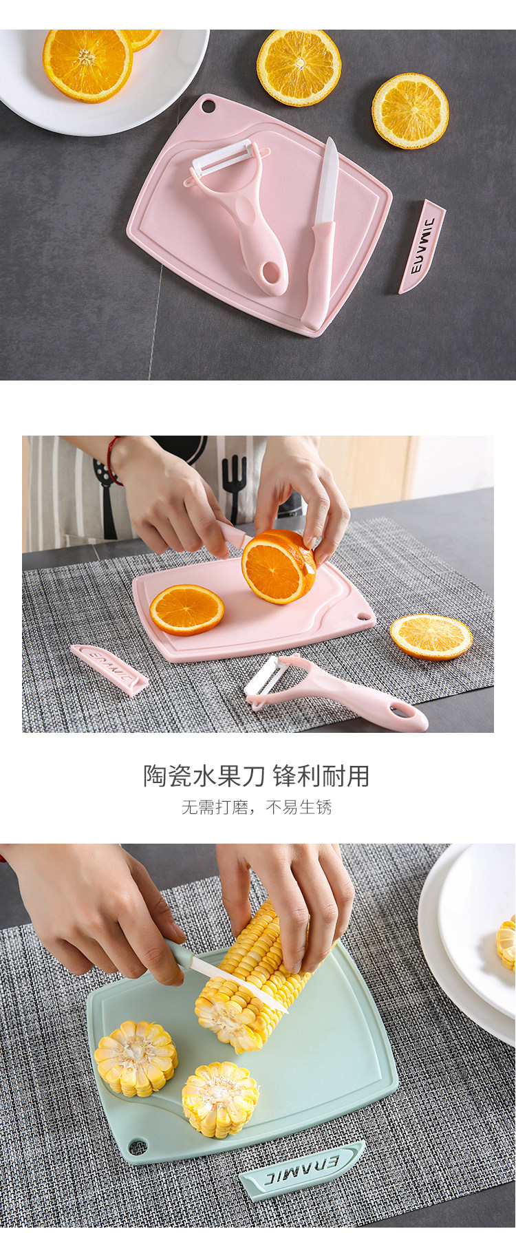 Керамический нож для чистки фруктов, разделочная доска, набор из трех предметов, домашний кухонный керамический нож, нож для чистки ножей, бесплатная доставка