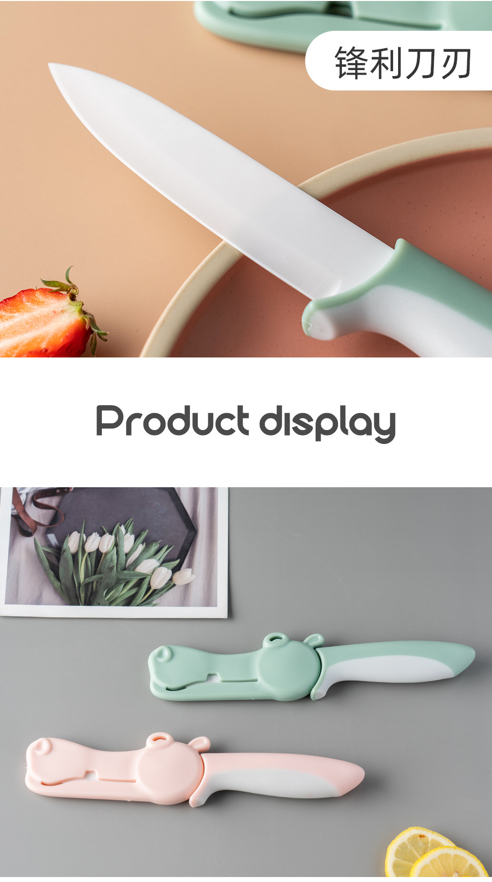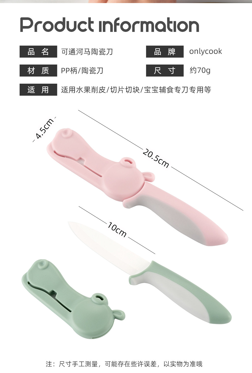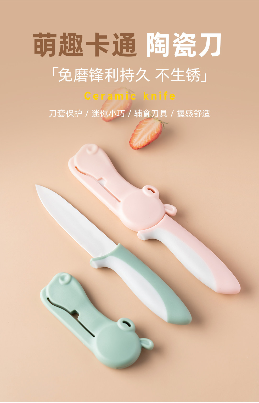 onlycook Милый портативный керамический детский складной нож, специальный нож для прикорма