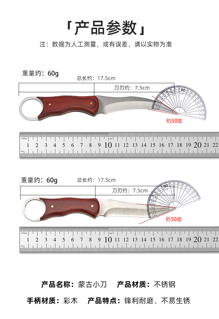 Монгольский мясной нож рука с мясом кухни кухня крюк маленький нож дома фруктовый нож для барбекю.