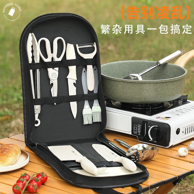 Дорожный нож, кухонная утварь, комплект из нержавеющей стали, снаряжение для кемпинга, портативная сумка-органайзер, посуда