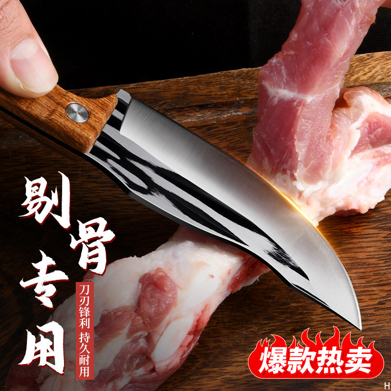 Борьба с костяным ножом, монгольская рука с мясом, едой мясо нож дома барбекю Руть мясо.
