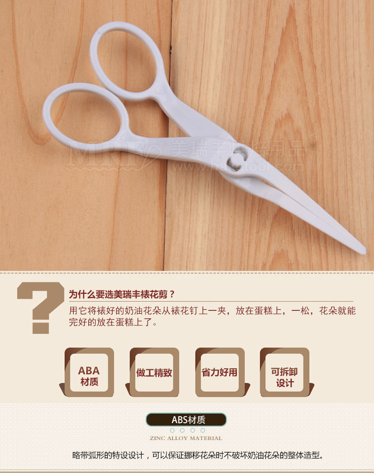 Белые акриловые кремовые ножницы, фондан с розой в составе