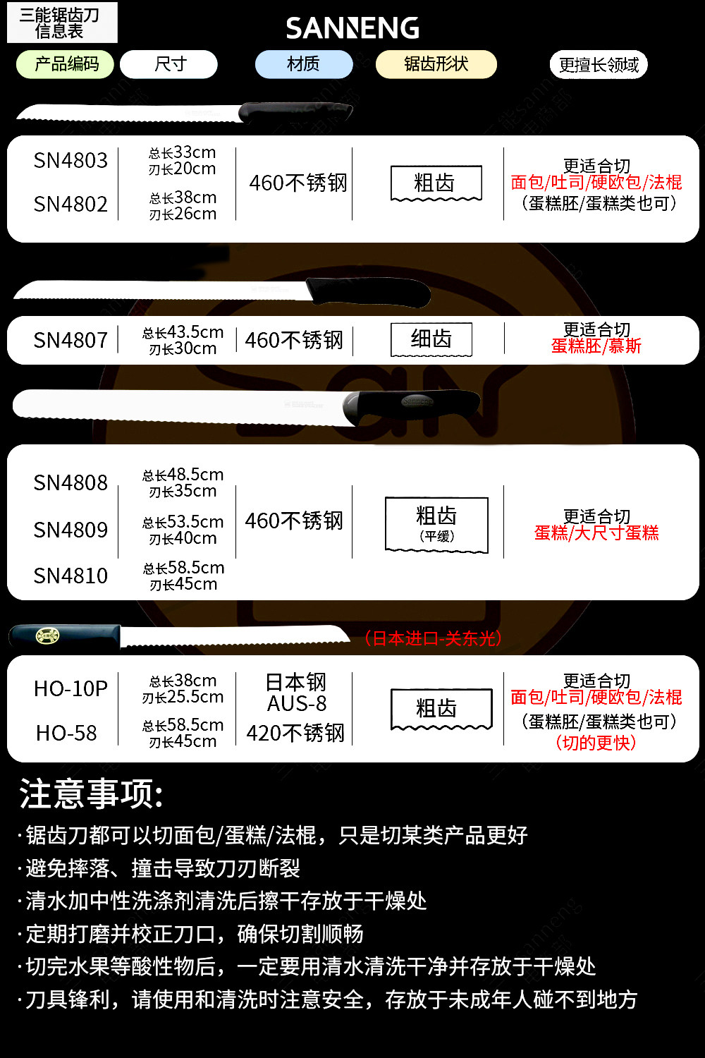三能 Разрыхлительные инструменты, кондитерский нож, нож для хлеба, нержавеющая сталь, 8 -дюймовая, 10 -дюймовая нож для торта, зубчатый нож, SN4802