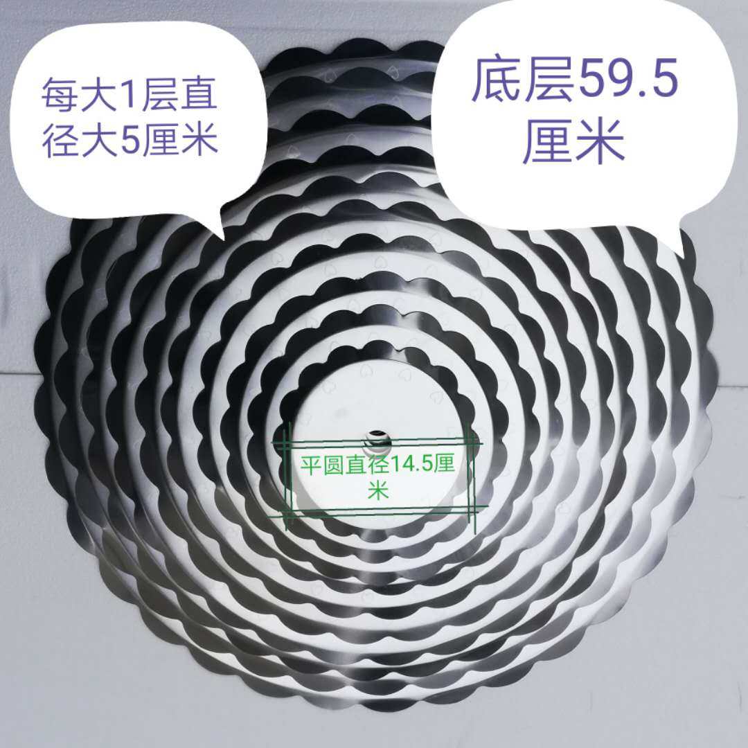 Слой 9-обычныйтарелка:Обычно ставят 20 (английские) дюймовые пирожные,22 -INCH Измерить диаметр кружевао58cm Диаметр внутреннего круга на поверхности измерительной поверхностиОколо 55 см