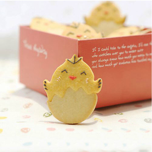 7Затем используйте форму цыплята, чтобы разрезать рисунок на желтом тесте.