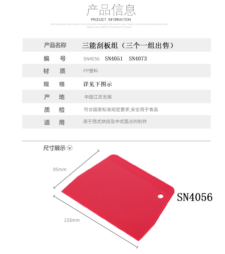 三能 Пластиковая скребок для скребки кремовые крема для лапши 3 ломтики набора инструментов для выпечки SN4054