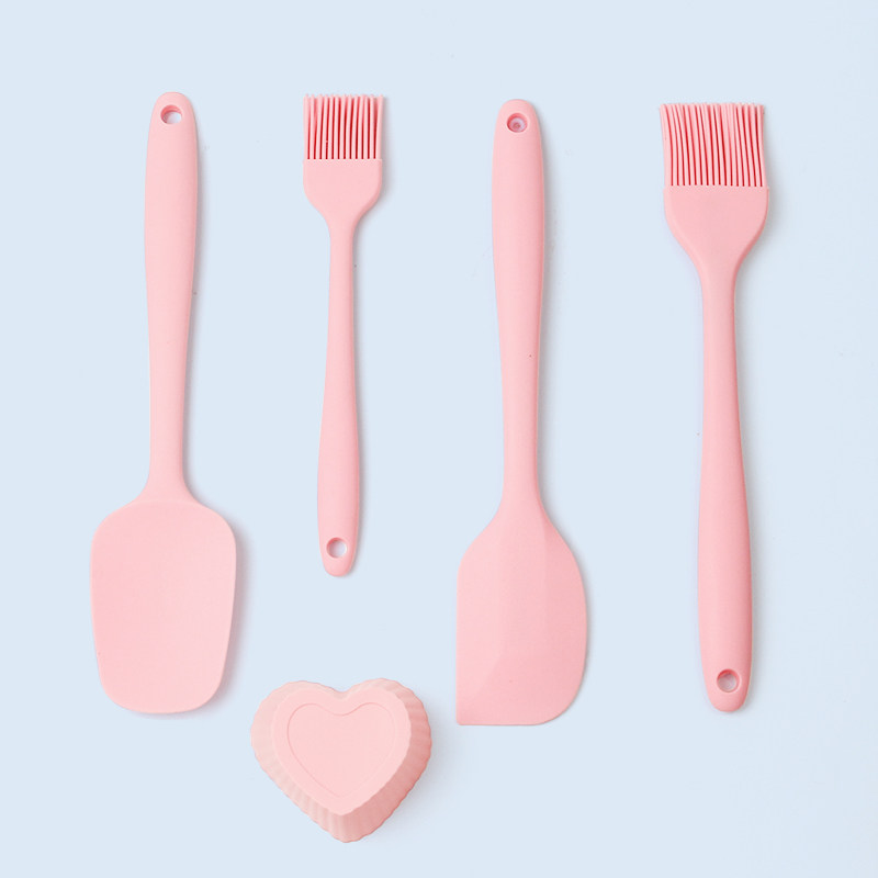 Розовый силиконовый скребок, кремовая термостойкая лопата, палочка для смешивания