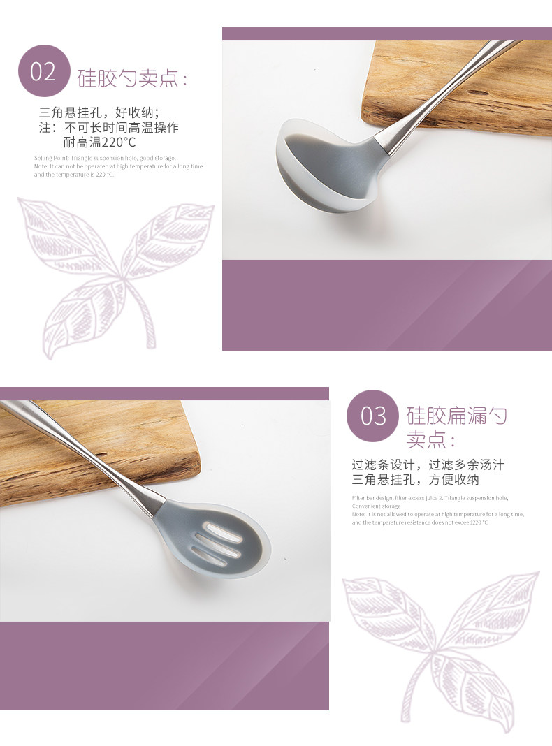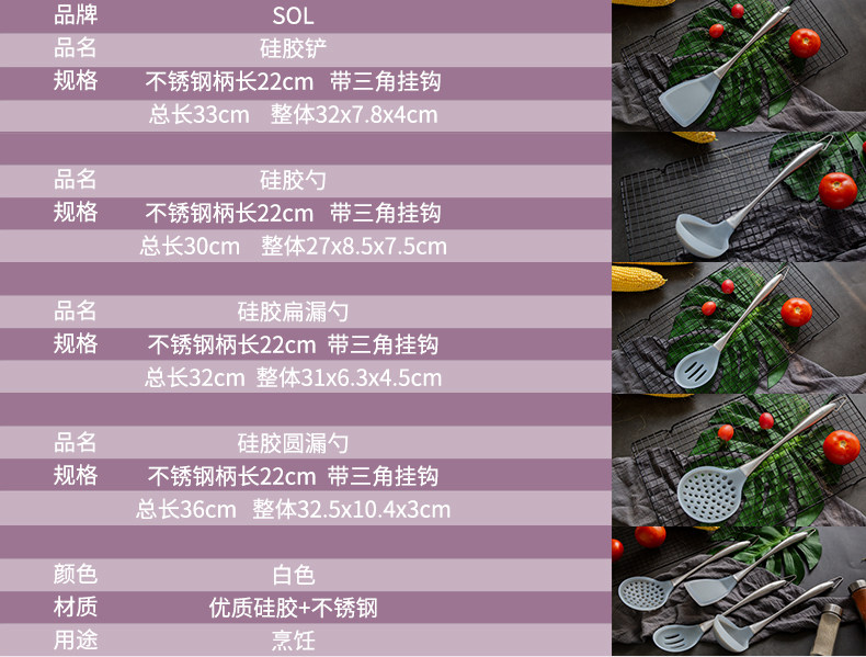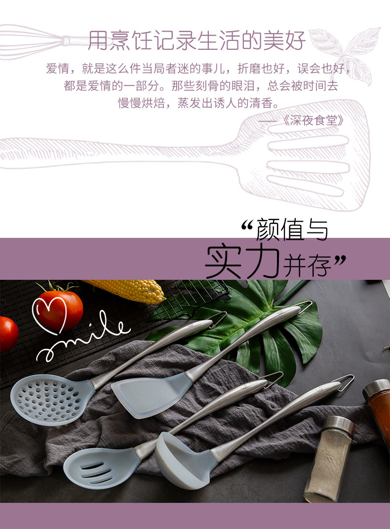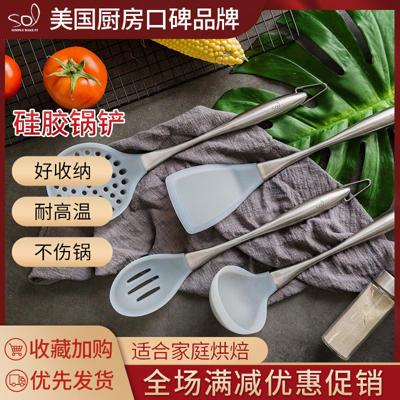 Силиконовая лопата из нержавеющей стали, кухонная утварь, комплект