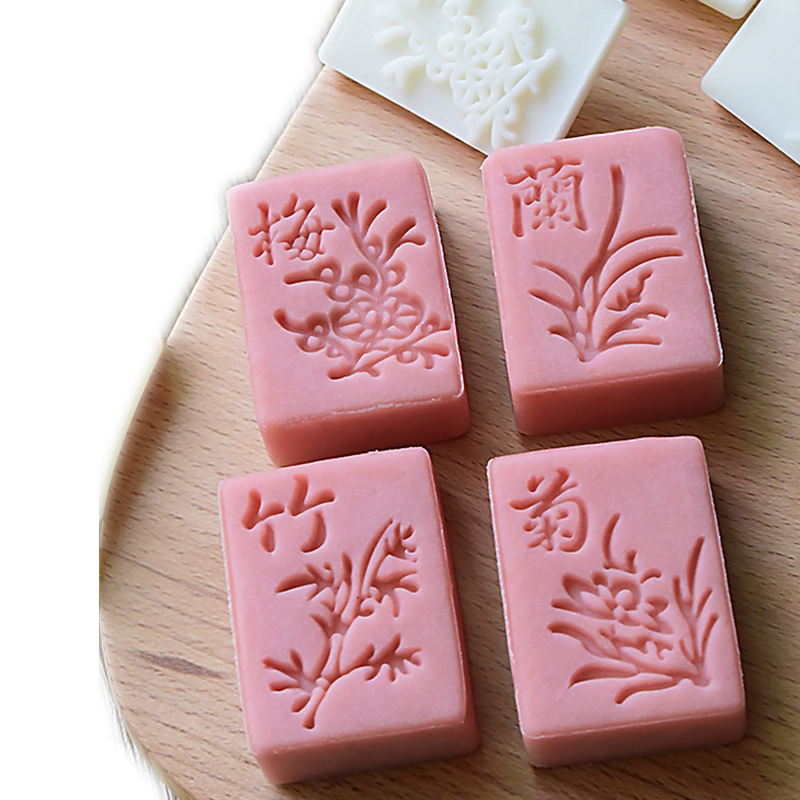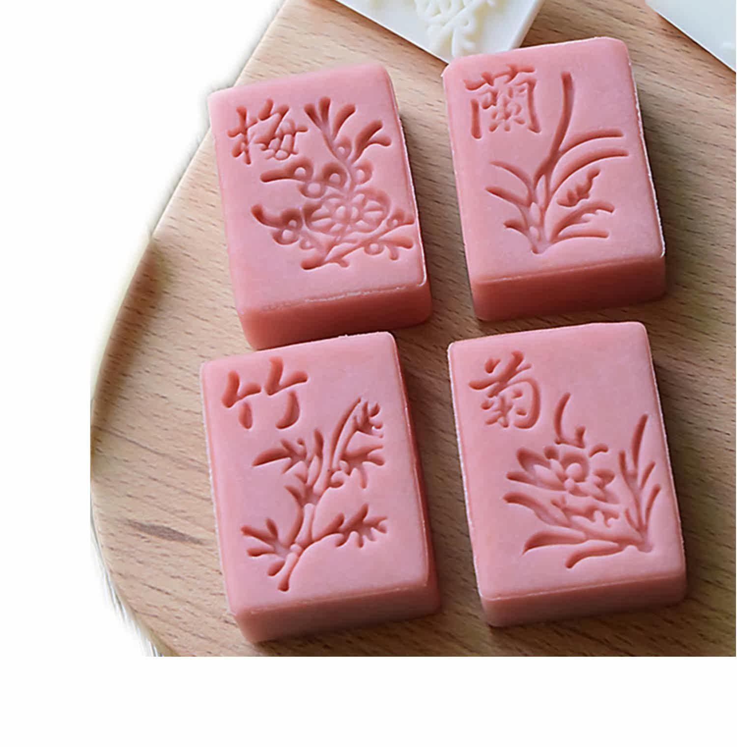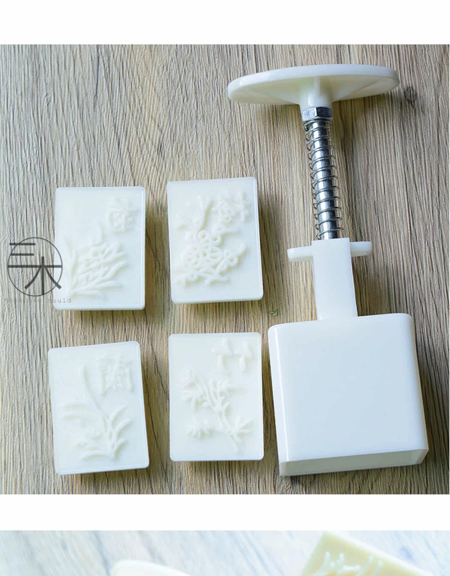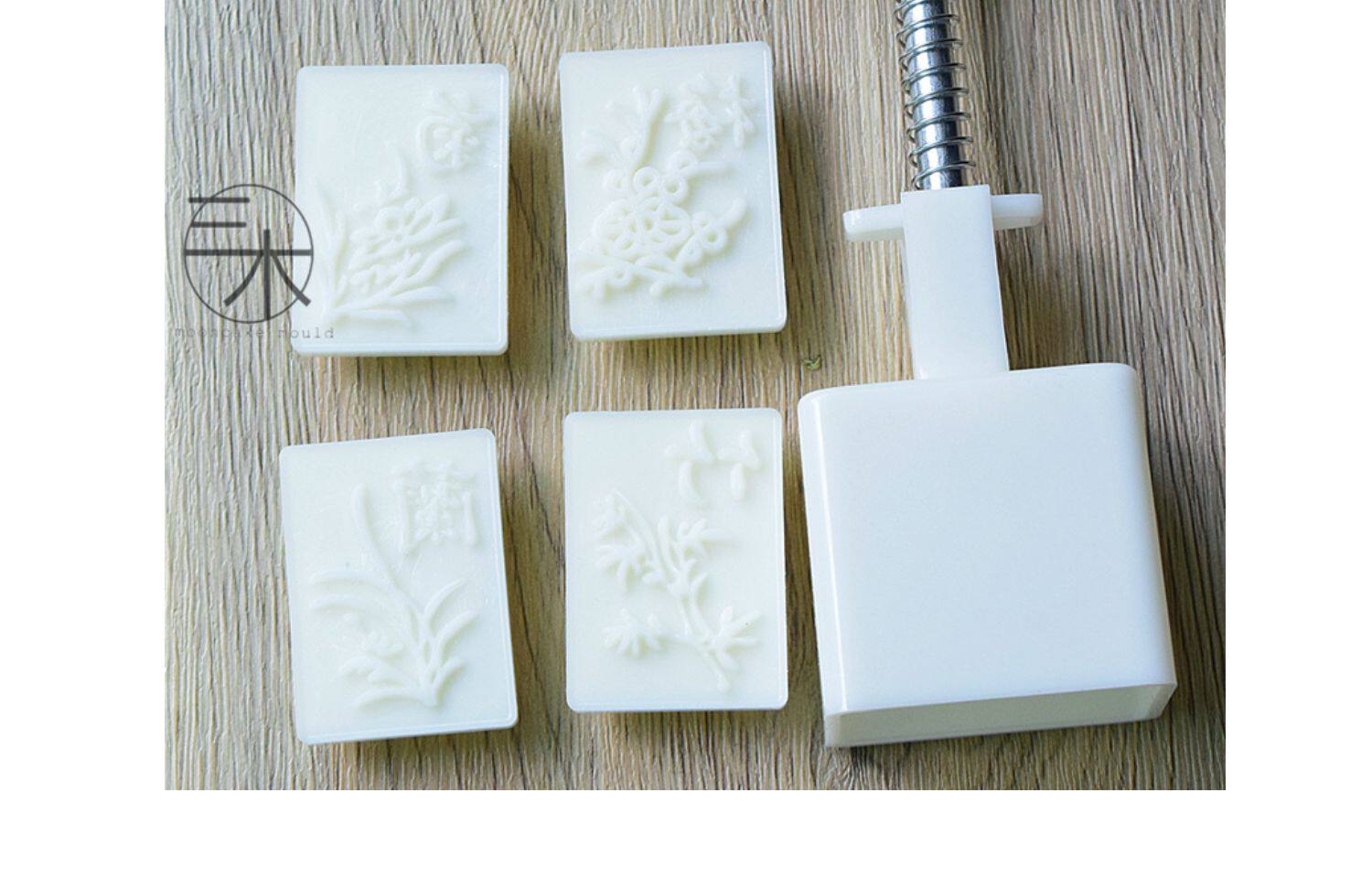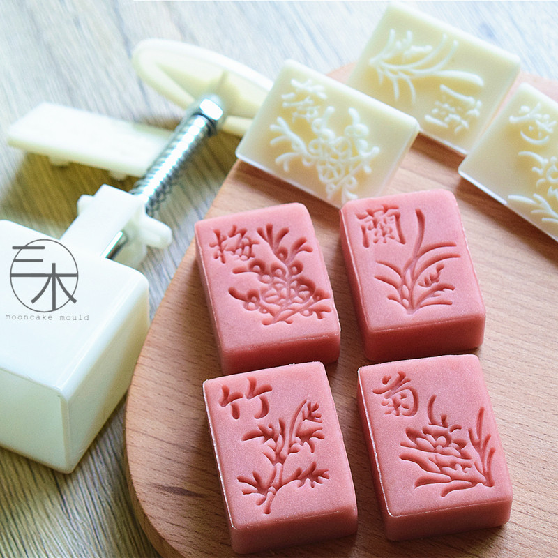 Санмуджия для плесени Квадратная слива, орхидея, бамбук и хризантема, национальный стиль тренда вручную плесень лунного пирога 40 грамм, домашнее благословение, богатство, долголетие