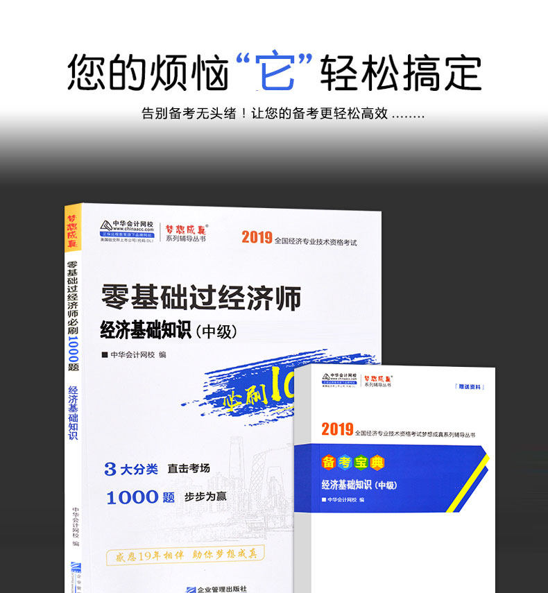 Pre -Sale Zero Basic Economist должен почистить 1000 вопросов Промежуточный экономический отдел 2019 Экономические базовые знания Китай бухгалтерский бухгалтерс онлайн -школа Dream Cheng Chengzhen 2019 Национальные экономические профессиональные экзамен