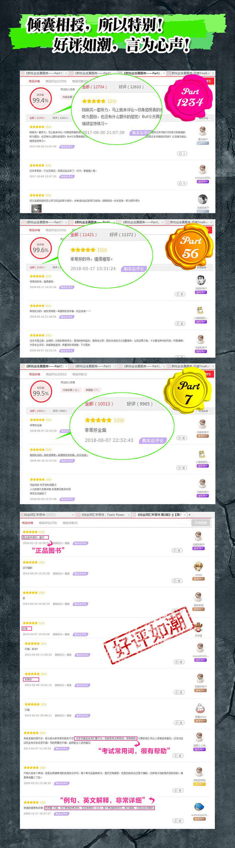 Эта книга классифицируется в соответствии с различными сценариями, и вы можете вспомнить места, которые вы испытали, когда вы учитесь.Например, офис“Картотеки”“Файл Архив”и т. д.Таким образом, вы можете применить то, что вы узнали, ваш образ будет ярким, и вы не будете устать, когда вы учитесь, чтобы вы могли вспомнить его немедленно.Я изучаю одну главу каждый день, но количество не очень велика, и я должен консолидировать упражнения после класса.Во всяком случае, это хорошая книга.——penguinvivian Хотя это не так сложные слова,По -прежнему очень полезно тщательно читать примеры предложений.Контента не так много, и практика очень интересная.Такие люди, как я, которые какое -то время не подвергались английскому языку, могут пробудить воспоминания о мозге.——tibetiris Перед экзаменом не так много времени, и уже слишком поздно запомнить большие книги.Трудно прочитать книгу словаря с слишком толстым, что полезно для экзамена TOEIC.Качество книги также хорошо, по крайней мере, это может заставить людей настаивать на чтении ее.—— После экзамена CET-6 я не видел английский более года.Но эта словарь - это не просто страница слов. , Мне это очень нравится.Людям, которые пощадили с работы, очень легко посмотреть два бара.—— В сочетании с различными категориями, это не будет выглядеть какABCТак устал, и есть и практика текста.—— |