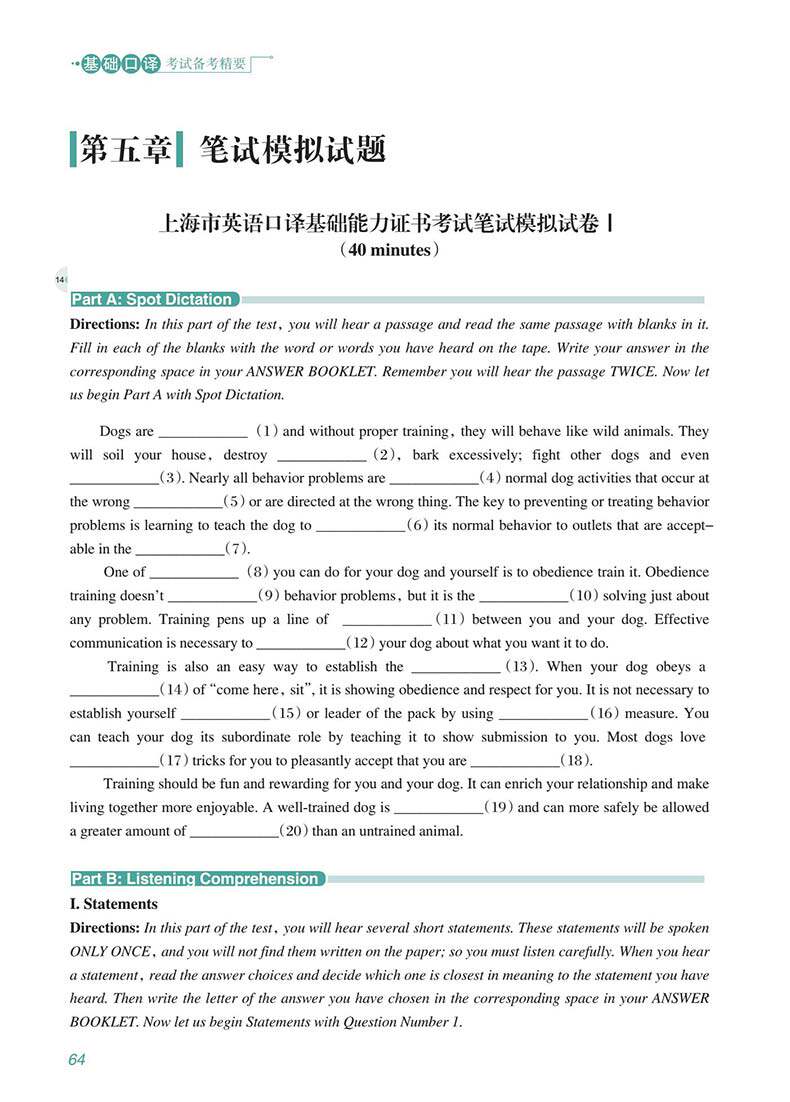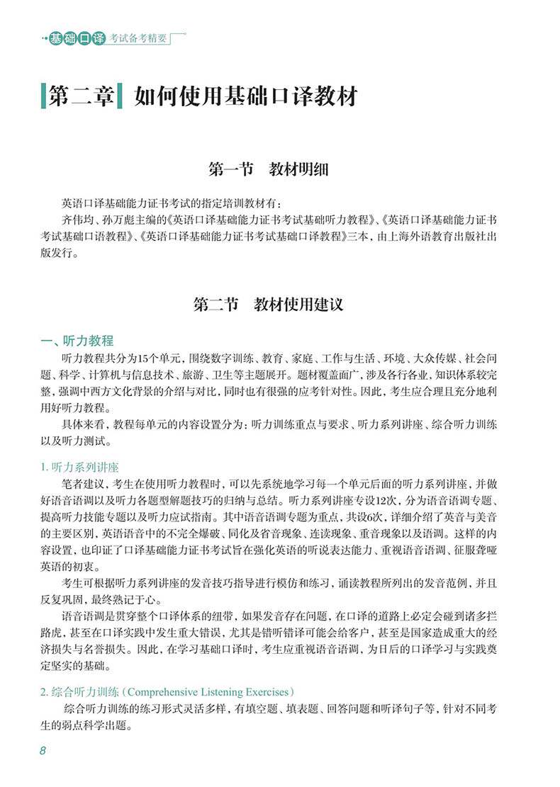 «Основы для базовых экзаменов по устному переводу» - это первый выбор для кандидатов, чтобы всесторонне улучшить комплексную английскую способность английского языка, играть в хорошую языковую фонд и практиковать солидные базовые навыки, чтобы успешно сдать основной экзамен по интерпретации.