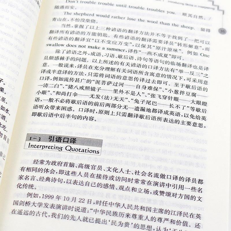 Введение в первую часть 1. История интерпретации Во -вторых, определение интерпретации В -третьих, характеристики интерпретации В -четвертых, стандарт интерпретации 5. Процесс интерпретации Шесть, тип интерпретации 7. Режим интерпретации 8. Качество переводчика Девять, обучение интерпретации Десять, исследование интерпретации Учебное пособие части 2 Навыки первого подразделения интерпретации Второй интерпретация приема блока Перевод сеанса 3 -го числа Блок 4 Интерпретация интерпретации Пятая квартальная интерпретация этикета (английский перевод HAN) Интерпретация этикета шестого устройства (китайский перевод Ying) Седьмая единица вводит сексуальную интерпретацию (английский перевод Хан) Восьмая единица вводит сексуальную интерпретацию (китайский перевод) Девять -убедительный пероральный перевод (английский перевод Хан) Серьера мериттат для переносительности (китайский перевод) Академическая интерпретация 11 -го отряда (английский перевод Хан) Академическая интерпретация 12 -й подразделения (китайский перевод) Бизнес интерпретация 13 -го подразделения (Британский перевод Хан) Блок 14 Бизнес -интерпретация (китайский перевод) Блок 15 -й популярность интерпретация популярности (английский перевод Хан) Блок 16 Популярная интерпретация популярности (китайский перевод) Тест на интерпретацию третьей части Тест на интерпретацию должен быть с практикой (16 наборов вопросов моделирования и соответствующие эталонные ответы) PostScript | ||||
