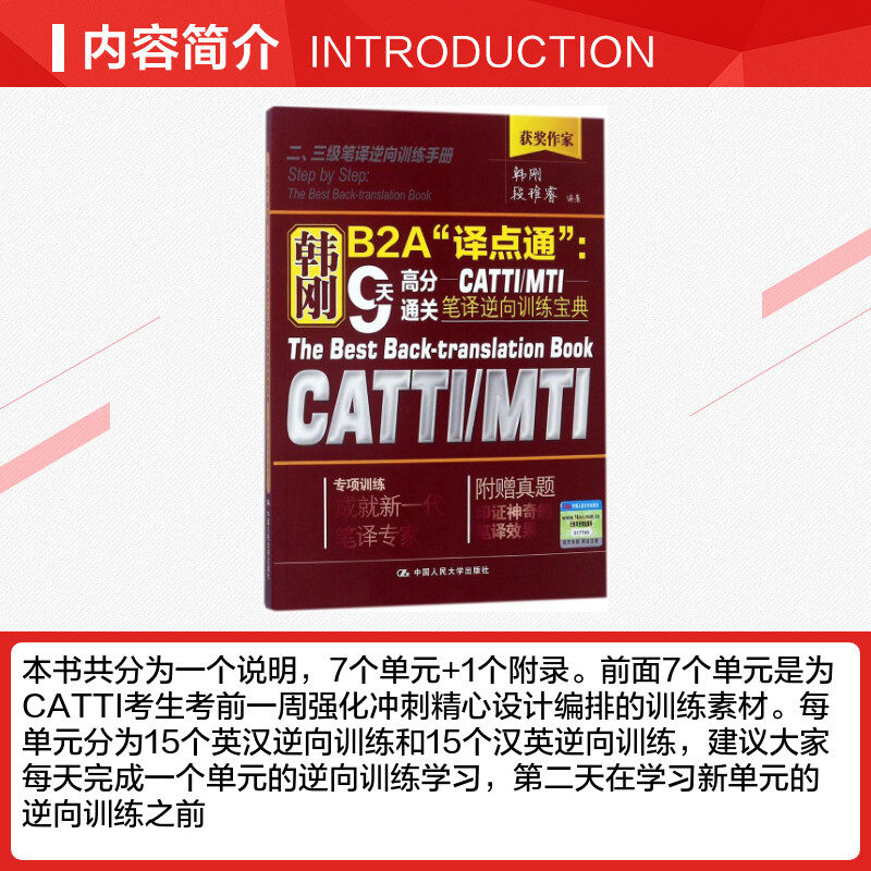 Эта книга разделена на одно описание, 7 единиц+1 Приложение.Первые 7 единиц были тренировочными материалами для спринтов, чтобы укрепить спринт за неделю до кандидатов в Catti.Каждое подразделение разделено на 15 британских и китайских обратных тренировок и 15 китайских и английских обратных тренировок. , Делать“ тепло и знают новое”.В приложении этой книги реальные темы основных предметов университетов превратились в основные предметы университетов в предыдущие годы и ссылочный перевод, предоставленный мне.
