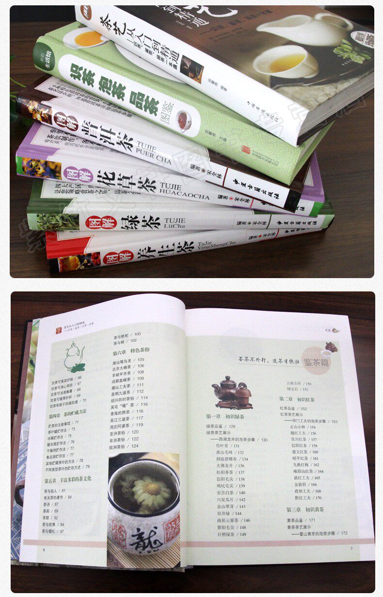 Полный набор из 6 томов чая через чайные книги Daquan Tea Art Book Церемония.