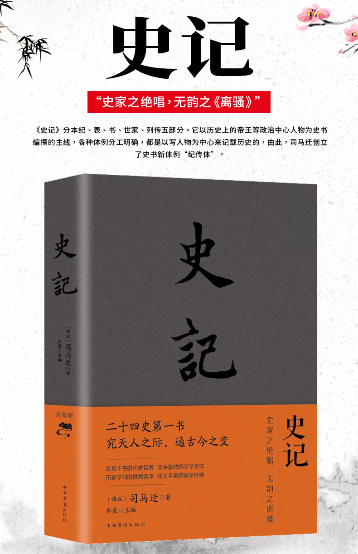 [Плоский твердый переплет] Исторические записи подлинной книги Вэнь Бай по сравнению с оригинальной книгой плюс перевод, не удаляя историю исторической версии ученика средней школы Симы Цянь Зи Чжи Тонг Цзянь 5000 лет китайских учебников в Китае