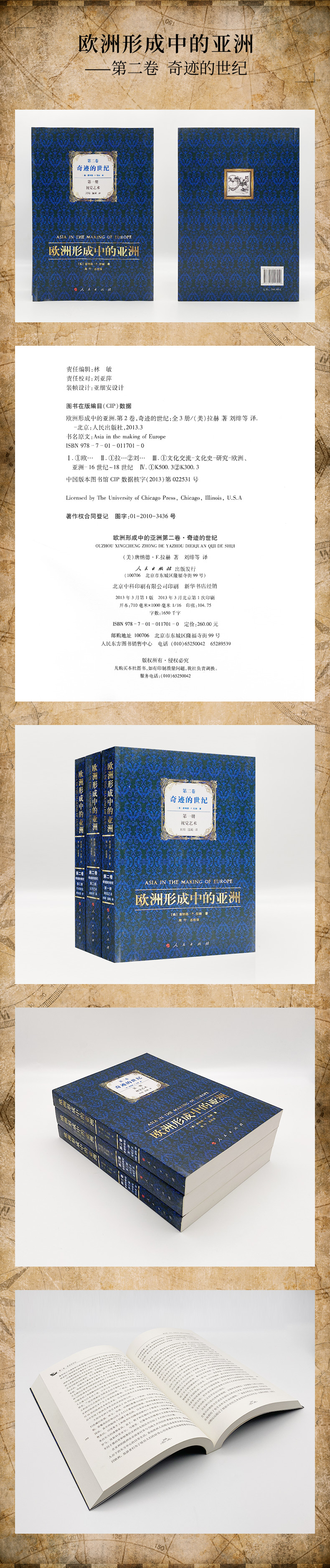 Первая часть этого тома, «Визуальное искусство», изучала влияние азиатского искусства, продуктов ручной работы, животных и растений, архитектурных украшений и ландшафтных картин на европейское искусство во время расцвета эпохи Возрождения в период барокко. Вторая «литература и искусство» сначала рассматривают основные документы об Азии в 16 -м веке, а также методы содержания и распространения документов, а затем входит в литературу от документов в литературу, чтобы изучить влияние азиатской культуры на европейскую светскую литературу, в частности, азиатские материалы, изображения, темы и концепции, которые появлялись в литературном развитии различных европейских групп. В третьем «академическом исследовании» в основном обсуждается прогресс влияния Азии на европейскую науку и технику.