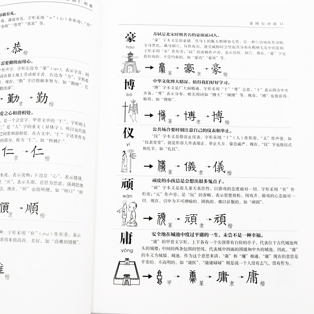 Все китайские иероглифы в этой книге взяты из древних книг, таких как «Спецификации и решение». Классные комнаты в классах.