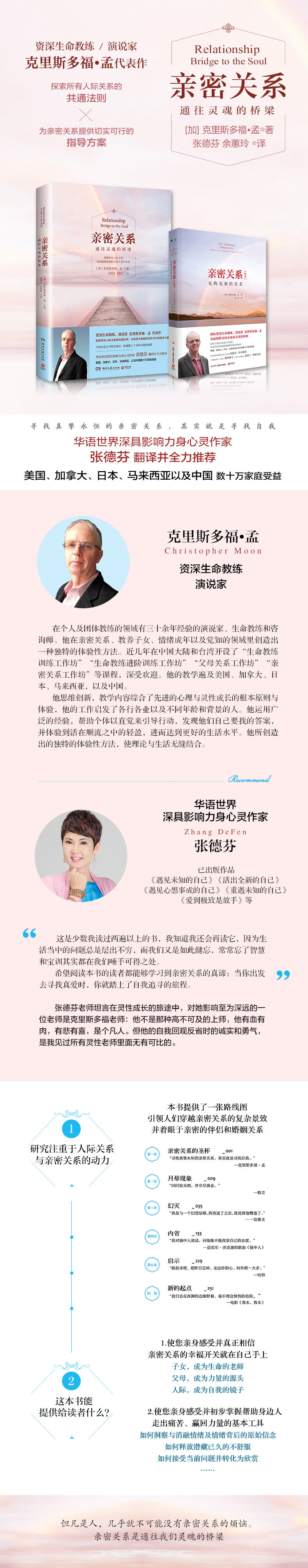 Когда я написал «интимные отношения» в 1999 году, цель состояла в том, чтобы предоставить людям дорожную карту, чтобы заставить людей пересекать сложные пейзажи интимных отношений и в основном сосредоточиться на интимных партнерах и брачных отношениях.Прошло пятнадцать лет, и я очень рад, что эти знания все еще полезны.Для меня эта книга представляет собой не только самостоятельное руководство или руководство по личному развитию, но и мой собственный опыт работы с моей женой Су Мэй, или урок и прорыв в качестве партнера.Хотя в книге было предоставлено много примеров и критериев, все еще есть некоторые взгляды сущности. Когда я был мужем, отцом и независимым человеком, я оказал мне большую помощь.Я хочу указать на некоторые взгляды и добавить в эту книгу немного новое понимание.