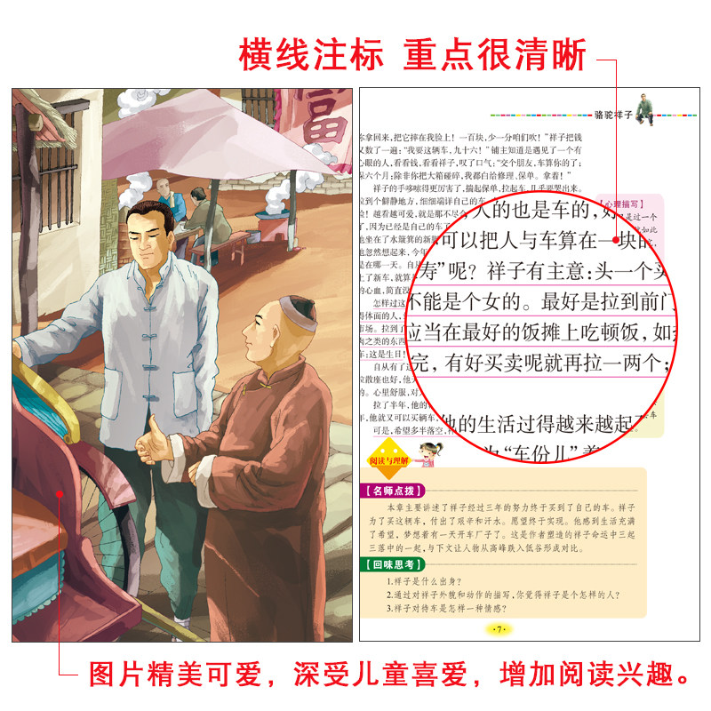 Camel Xiangzi Оригинальная книга подлинная мировая классическая шедевр младший школьник средней школы 3-6 ученики начальной школы Молодежная версия 3456 должна прочитать Ученики внеклассных книг рекомендуют детскую литературу внеклассные книги