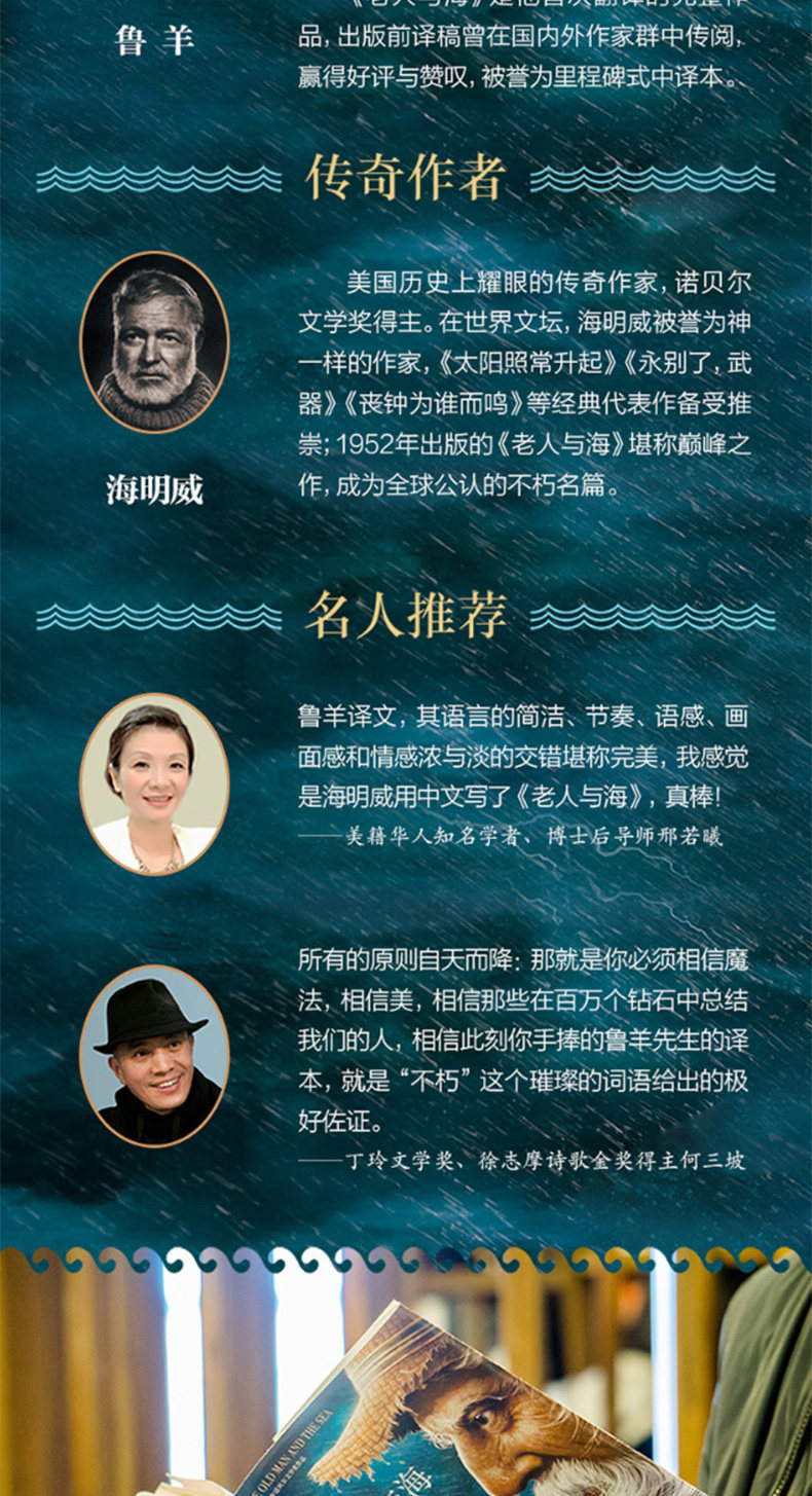 «Пожилые и море (Эссеи)» - это Onest&Middot; Hemingway был опубликован в романе на Кубе в 1951 году и был опубликован в 1952 году.Это одна из произведений Хемингуэя.Он рассказывает историю о пожилом кубинском рыбаке, который борется с огромной рыбой марлиной в дальнем потоке.Он устанавливает выдающуюся позицию Хемингуэя в мировой литературе. Этот роман последовательно получил премию США Пулитцеровской премии 1953 года и премию Нобелевской литературы 1954 года.