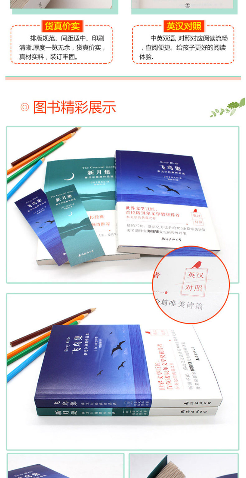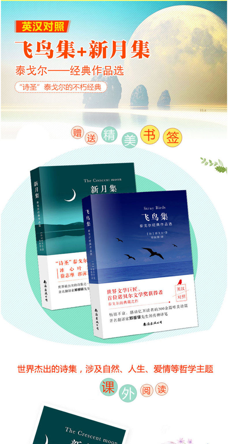 Коллекция поэзии Тагора все 2 тома подлинной коллекции летающих птиц+Полумесяц ежемесячный бинг -бингевой издание подлинное издание Rukenson Tarogol Poetry Junior High School Ученики чтение книг