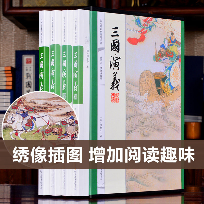 Подлинное] Четыре великие классики: Романтика трех королевств, оригинальная полная версия, написанная Ло Гуаньчжуном, бокс-сет из 4 томов, книга с аннотациями с вышивкой больших персонажей, внеклассное чтение для старшеклассников, младших школьников и учащихся начальной школы, для чтения взрослыми, Книжный клуб Хуаншань