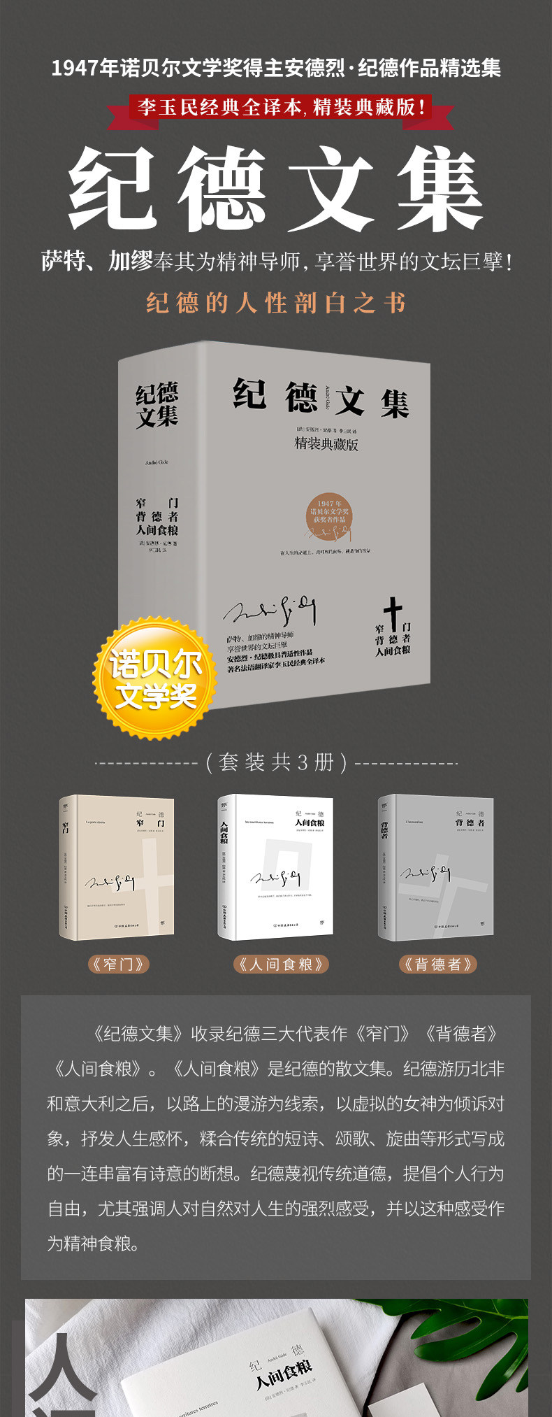 Коллекция Ji Dewen: Food Feater+узкие двери+Backdoor Подлинная коллекция Нобелевских премий Коллекция литературы литературы литературы по общему полному перевод