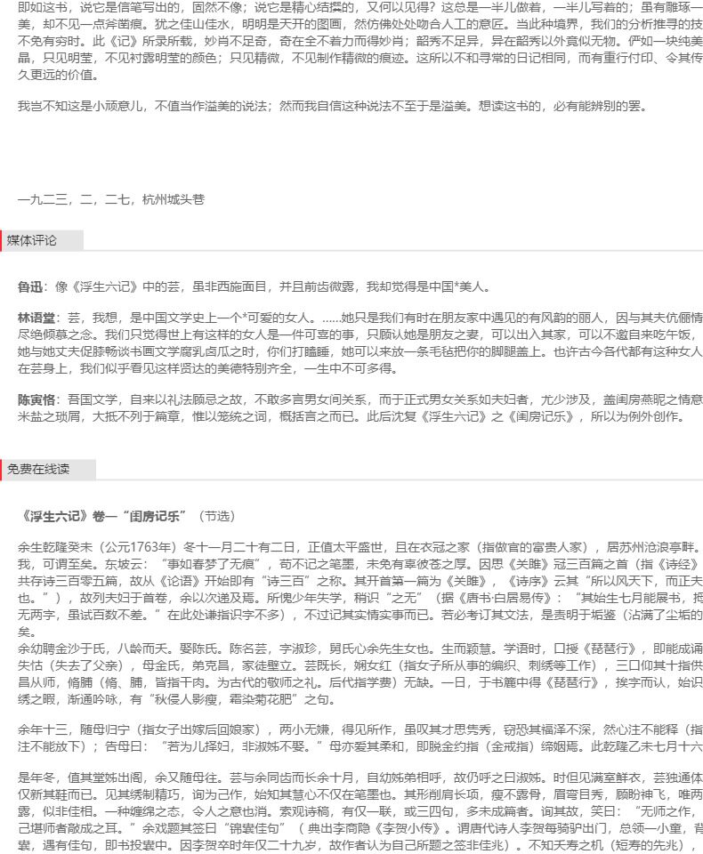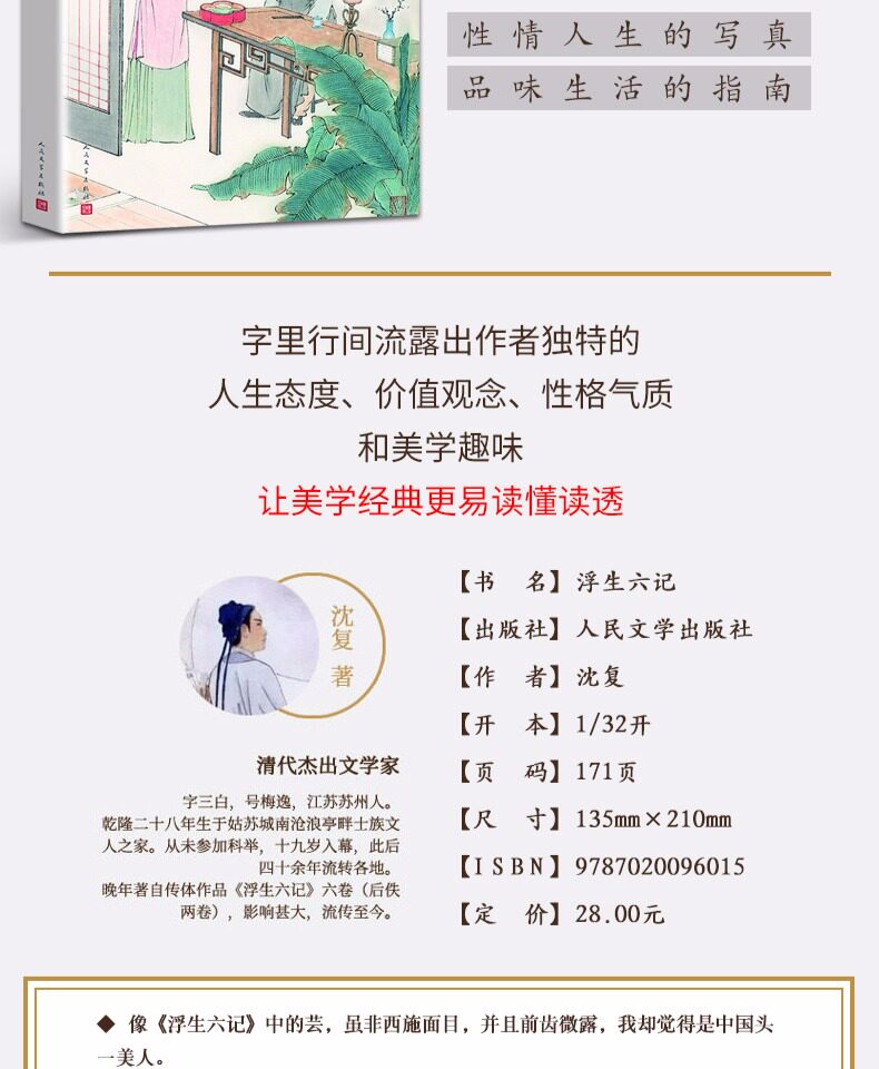 [Пятно] Плавающее шесть джи Шен Фу подлинная народная литературная пресса без удаления китайских классических литературных шедевров Классические романы книги Молодежная версия младших учеников старших классов Классическое внеклассное чтение книг чтения