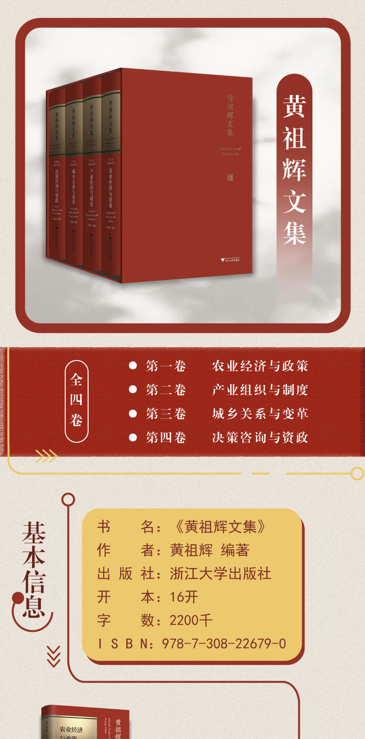 Huang Zuhui Wenji (всего 4 тома) Сельскохозяйственная экономика и политика+промышленная организация и система+городские и сельские отношения, а также изменение+консультация и политика активов и актива.